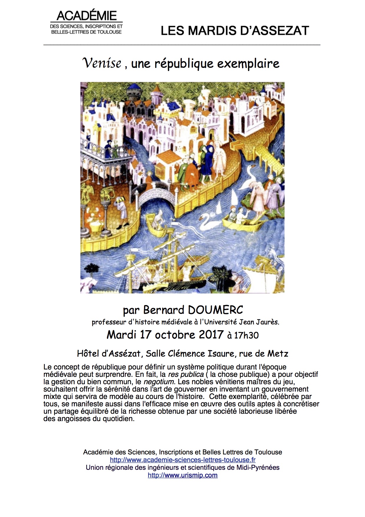 17 Octobre 2017 – Mardi Assézat : « Venise une république exemplaire » par Bernard DOUMENC