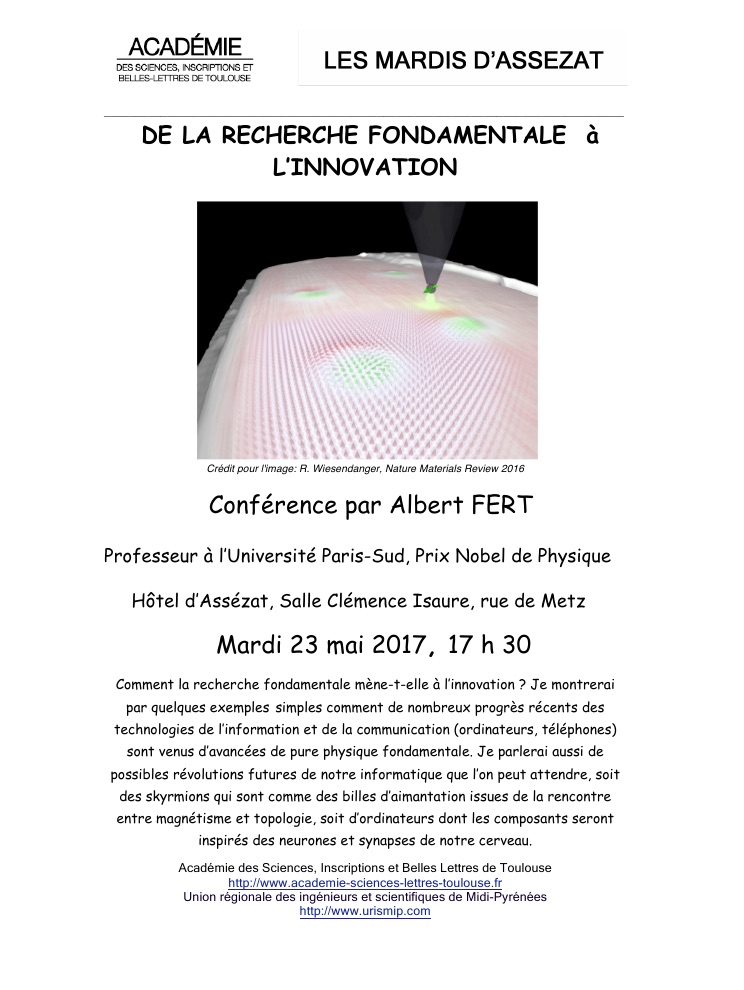 23 Mai 2017 – Mardi Assezat : « De la recherche fondamentale à l’Innovation. » (A. Fert)