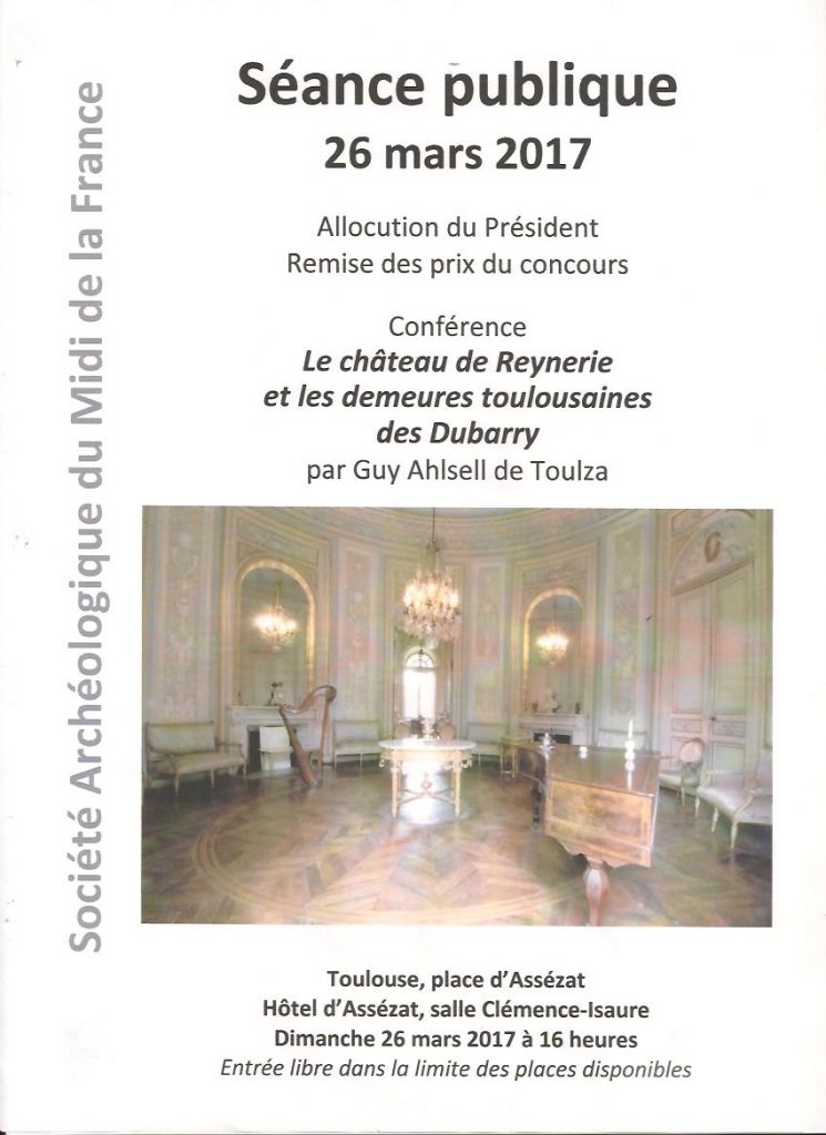 26 Mars 2017 – Le château de Reynerie et les demeures toulousaines des Dubarry. (Guy Ahlsell de Toulza)