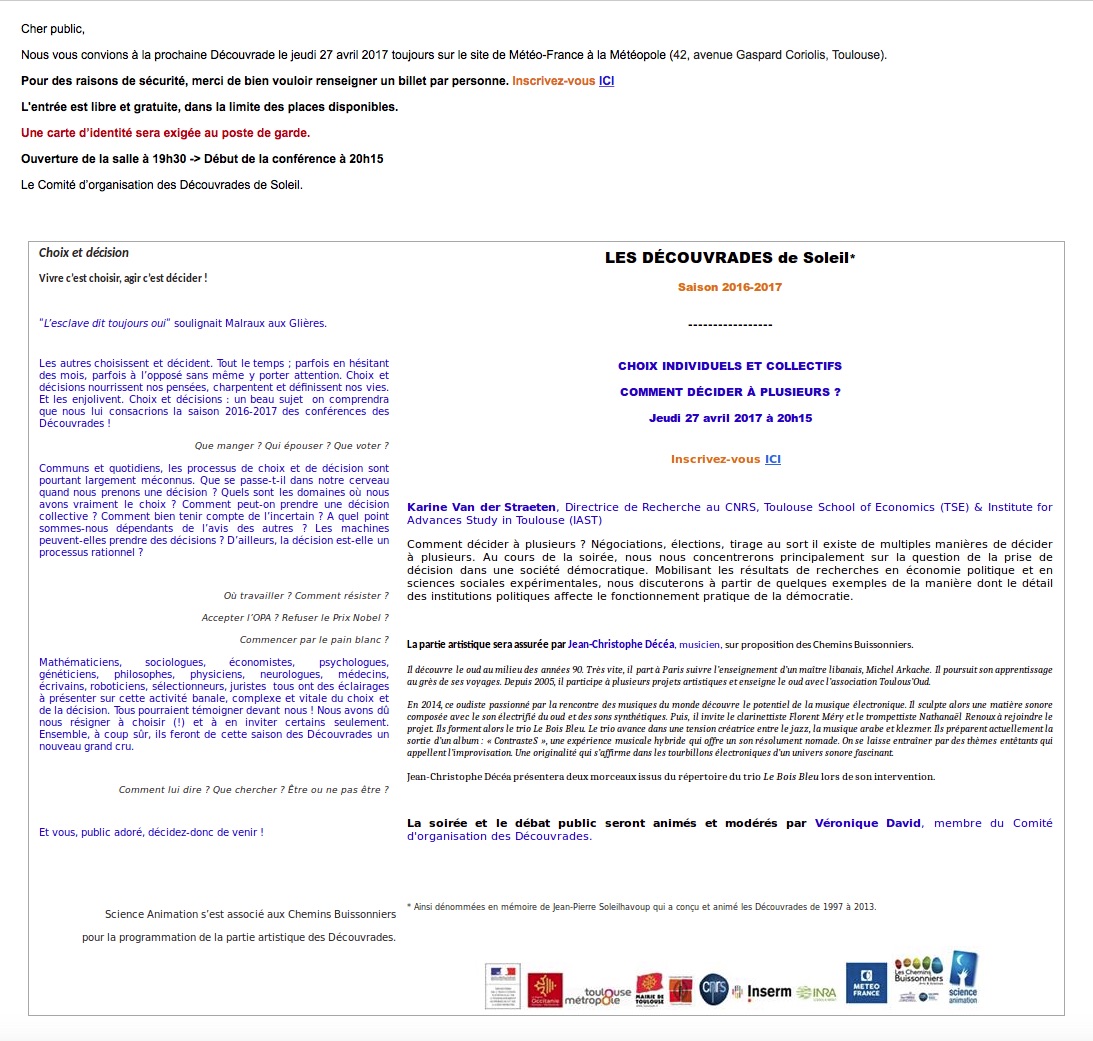 27 Avril – « Choix et décision » par Les DECOUVRADES de soleil.