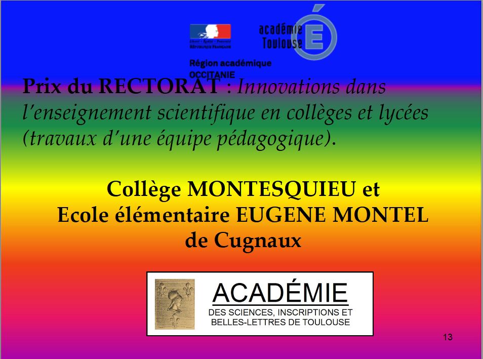 Lauréat : Le binôme Collège Montesquieu – Ecole élémentaire Eugène Montel de Cugnaux