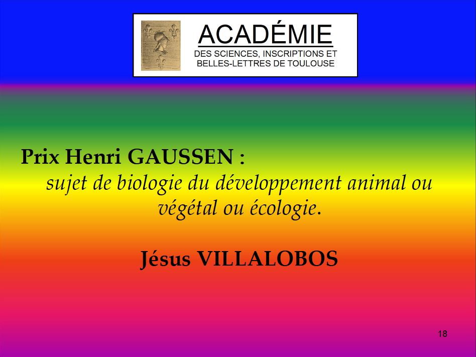Prix Henri Gaussen : sujet de biologie du développement animal ou végétal ou écologie.