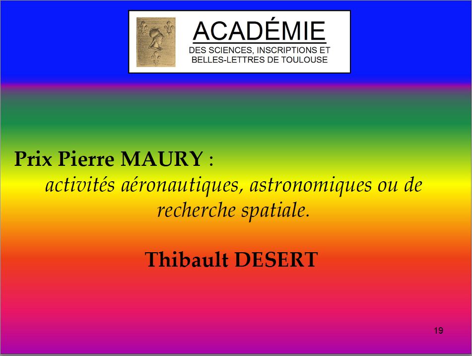 Prix Maury : activités aéronautiques, astronomiques ou de recherche spatiale.