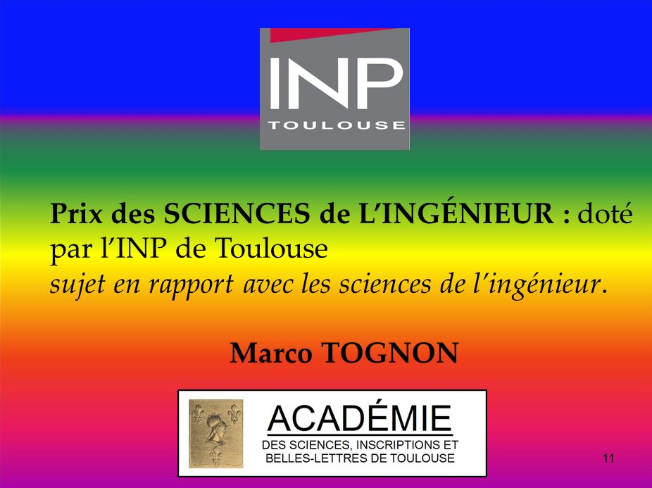 Prix de l’innovation : doté par la ville de Toulouse pour des travaux particulièrement innovants.