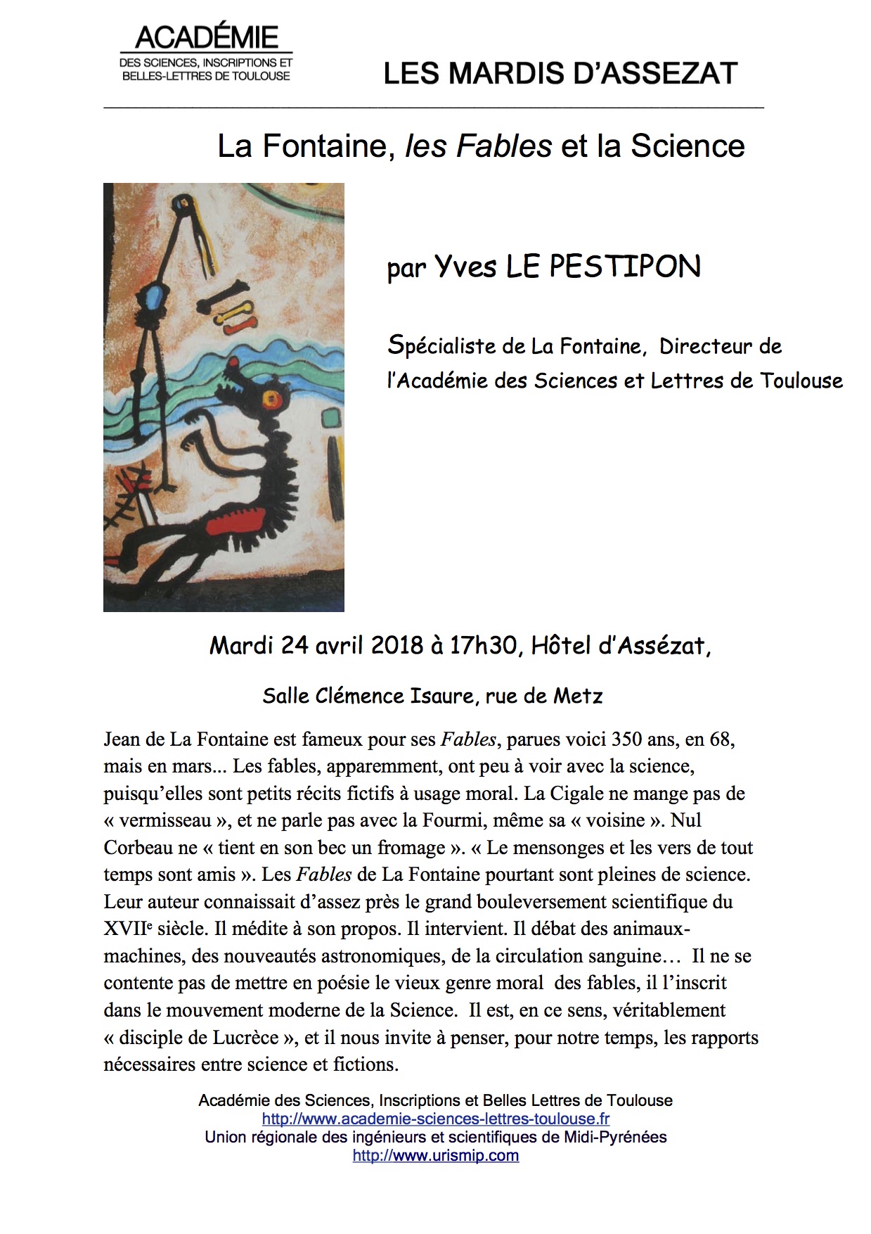Mardi Assézat – 24 Avril 2018 : La Fontaine, Les Fables et la Science (Y. Le Pestipon)