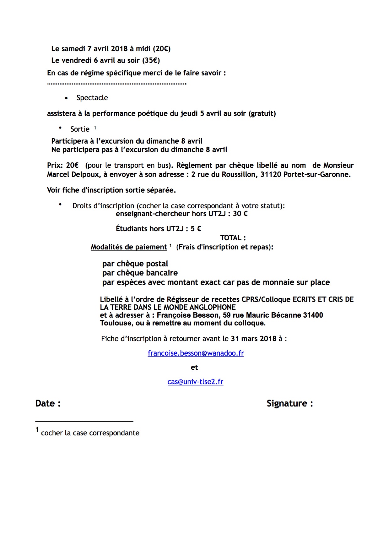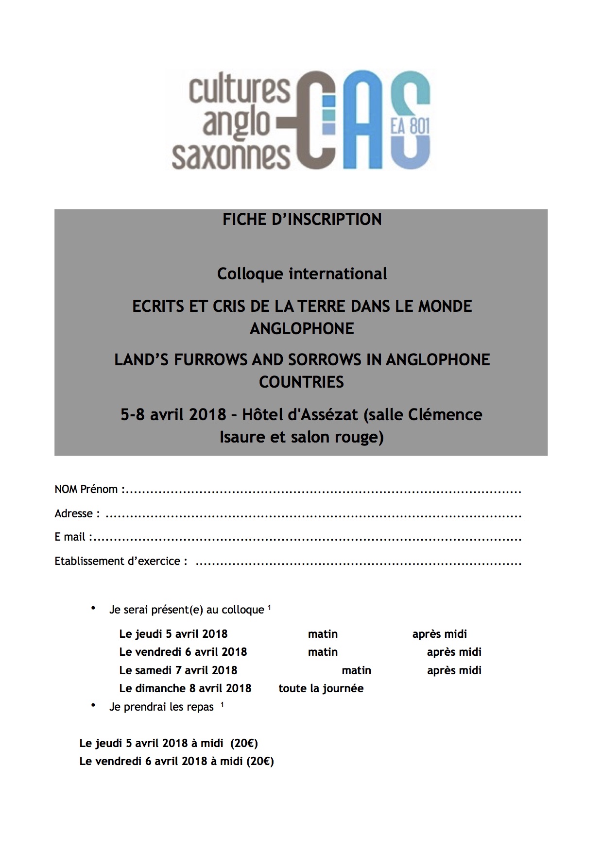 Inscription au colloque 5-8 avril 2018