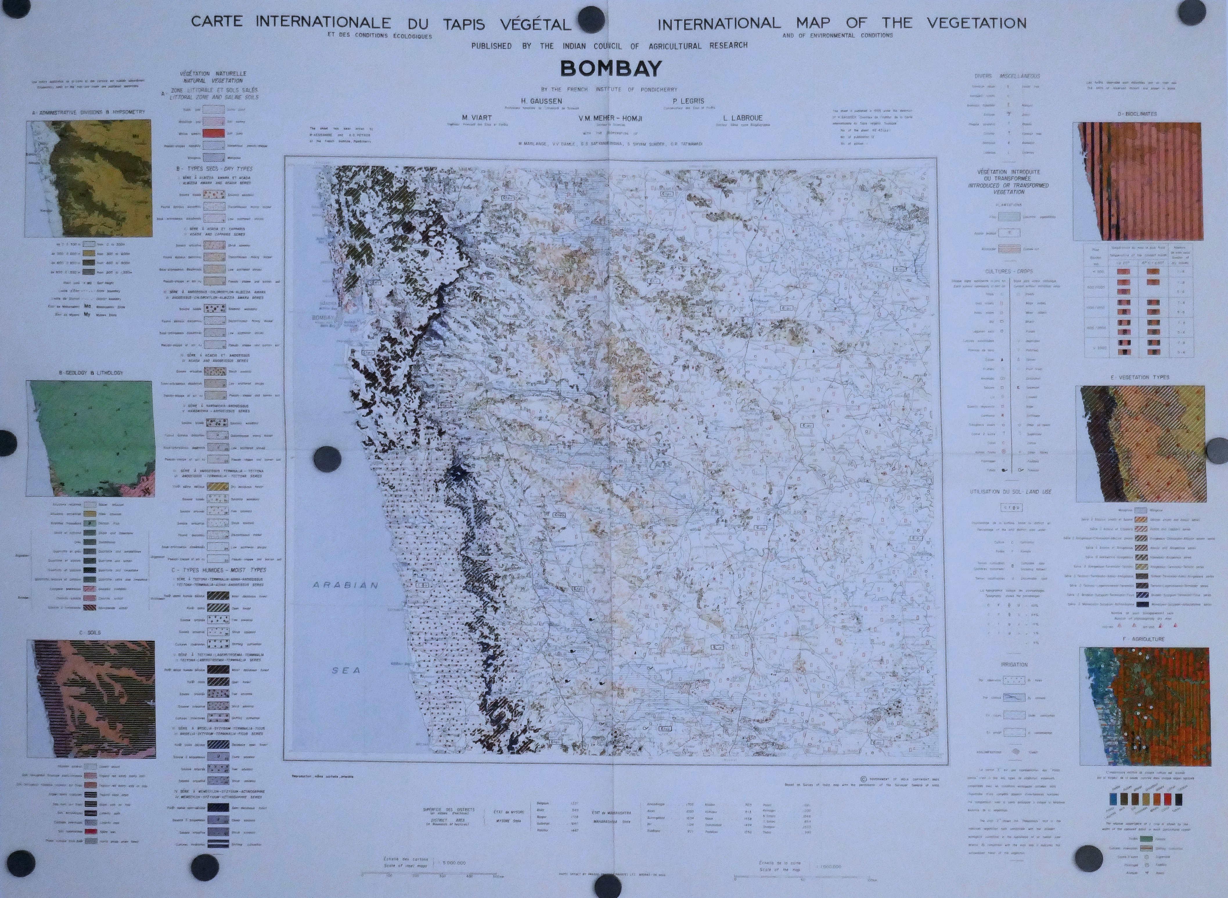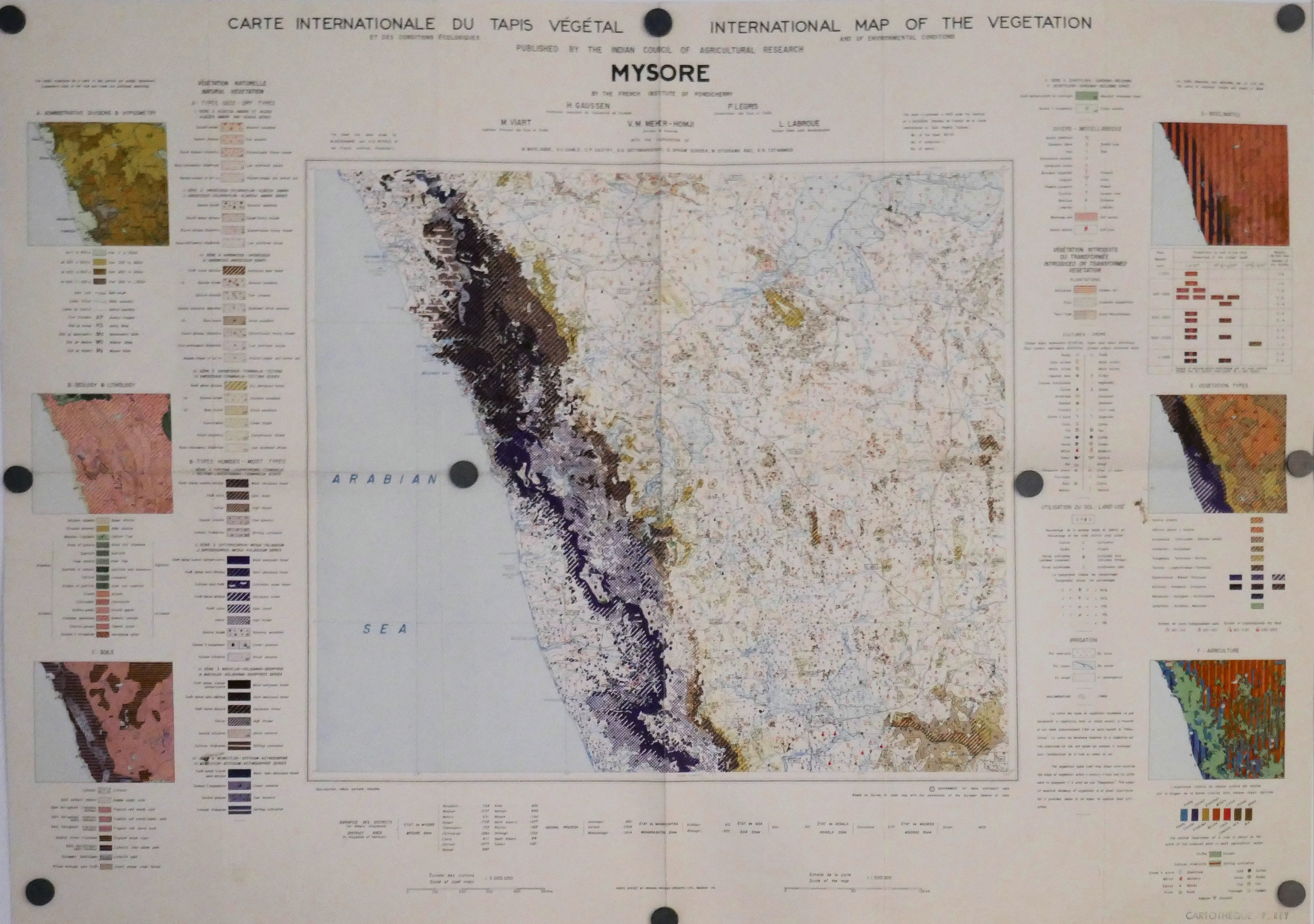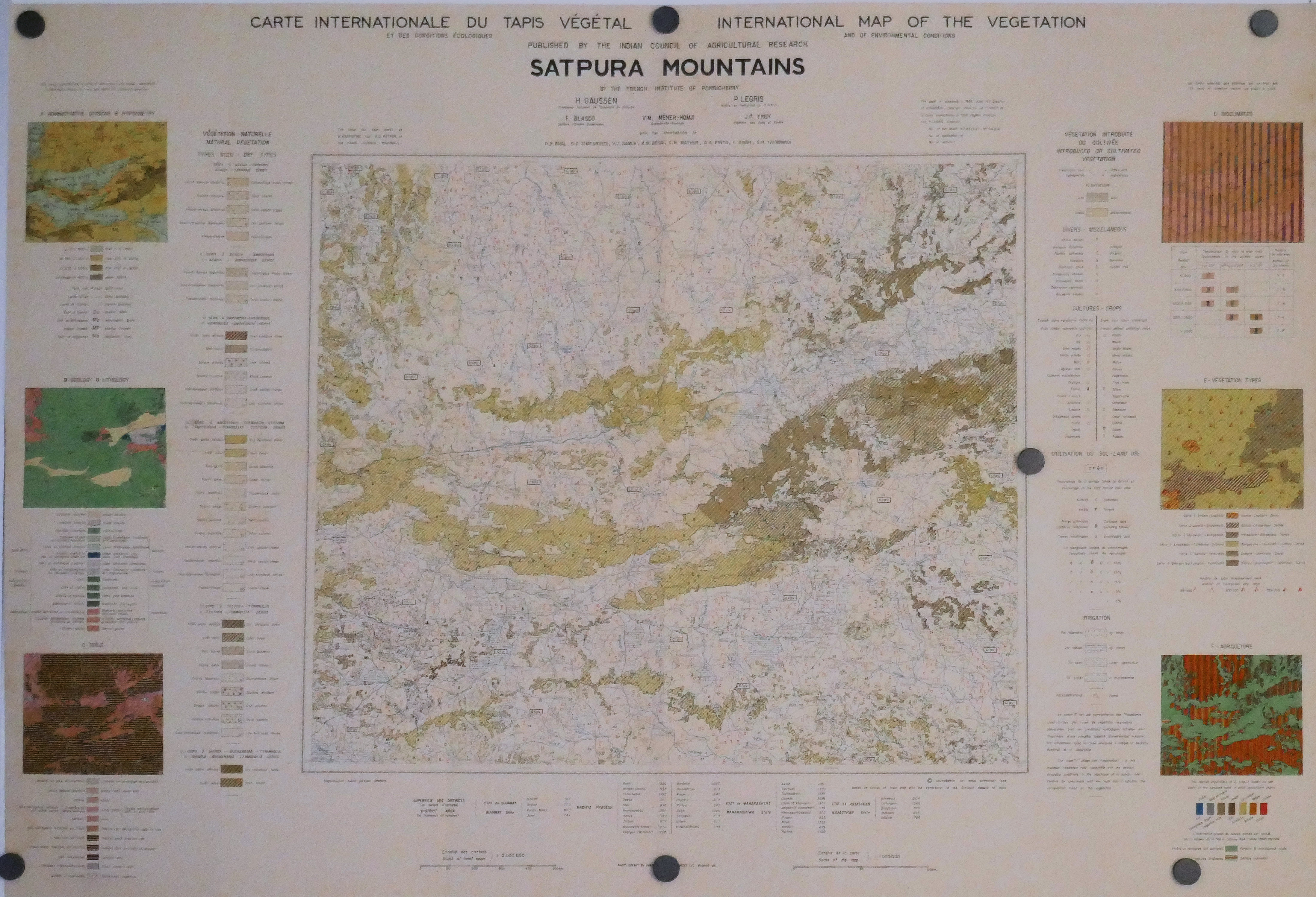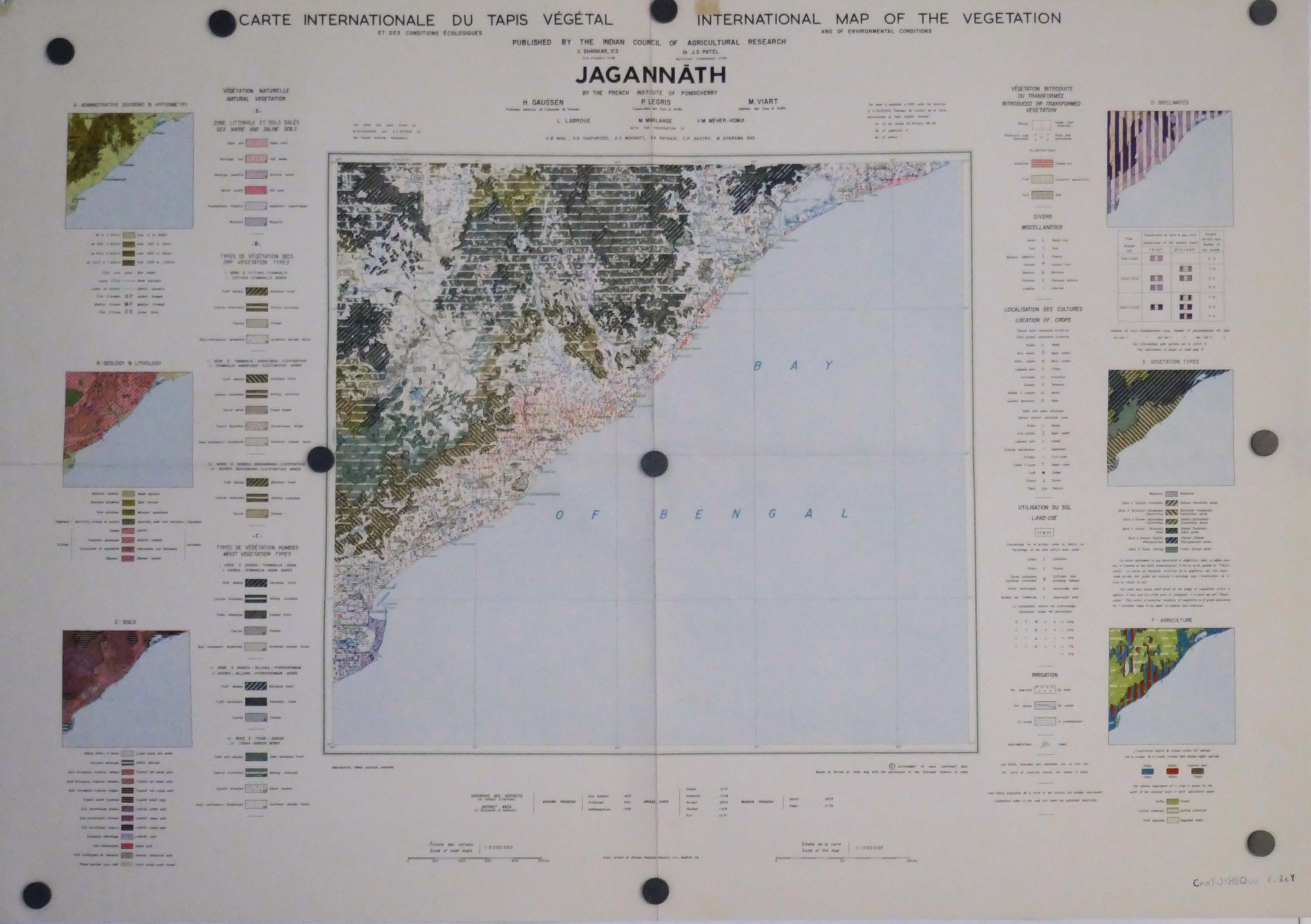Carte internationale du Tapis Végétal au 1.000.000° CAP COMORIN 1961 MADRAS 1962 GODAVARI 1963 JAGANNATH 1963 CEYLAN 1964 MYSORE 1965 BOMBAY 1965 SATPURA M 1968 KATHIAWAR 1968 Gde COMORE 1969