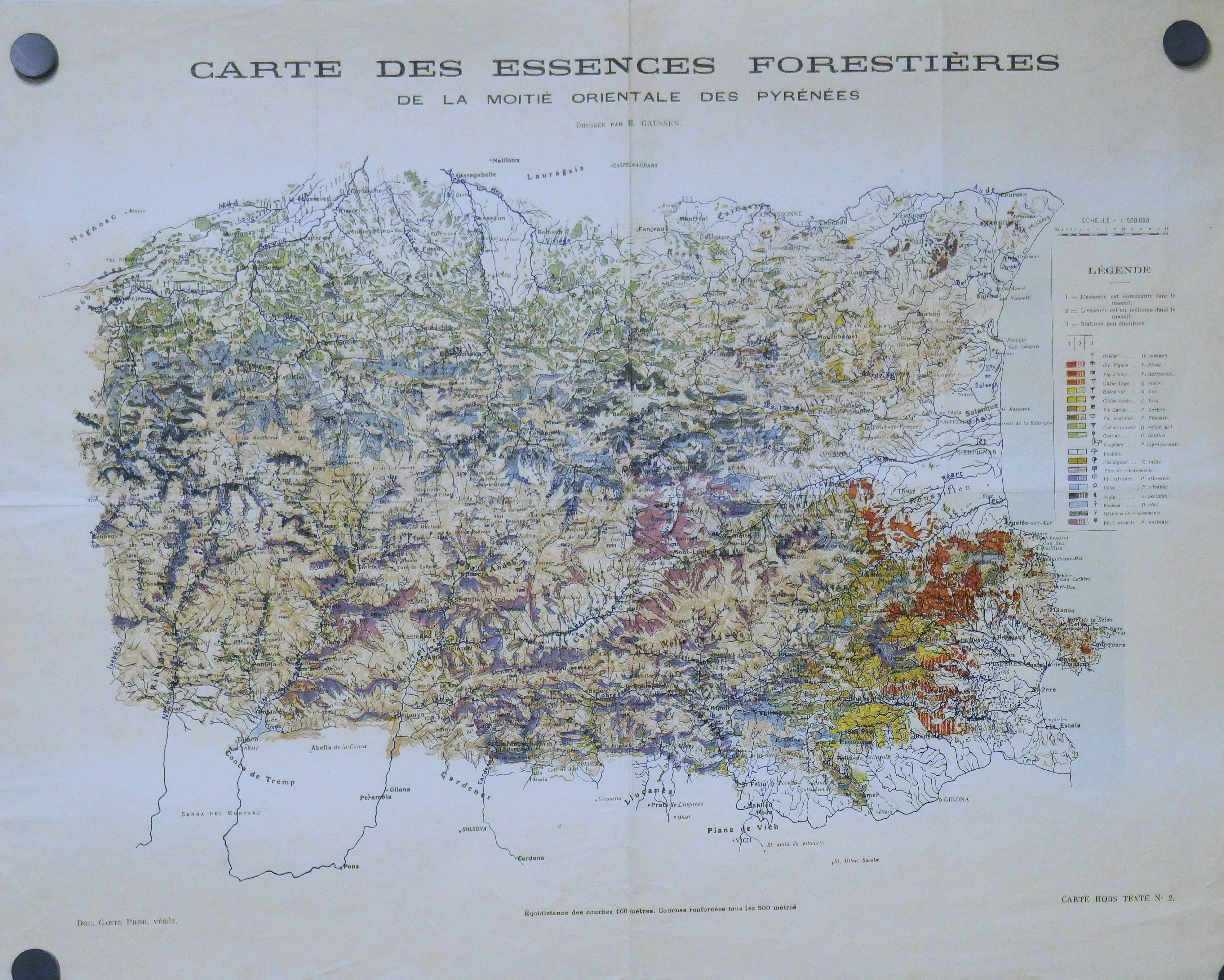 Carte des Essences forestières de la moitié orientale des Pyrénées 500.000° 1926