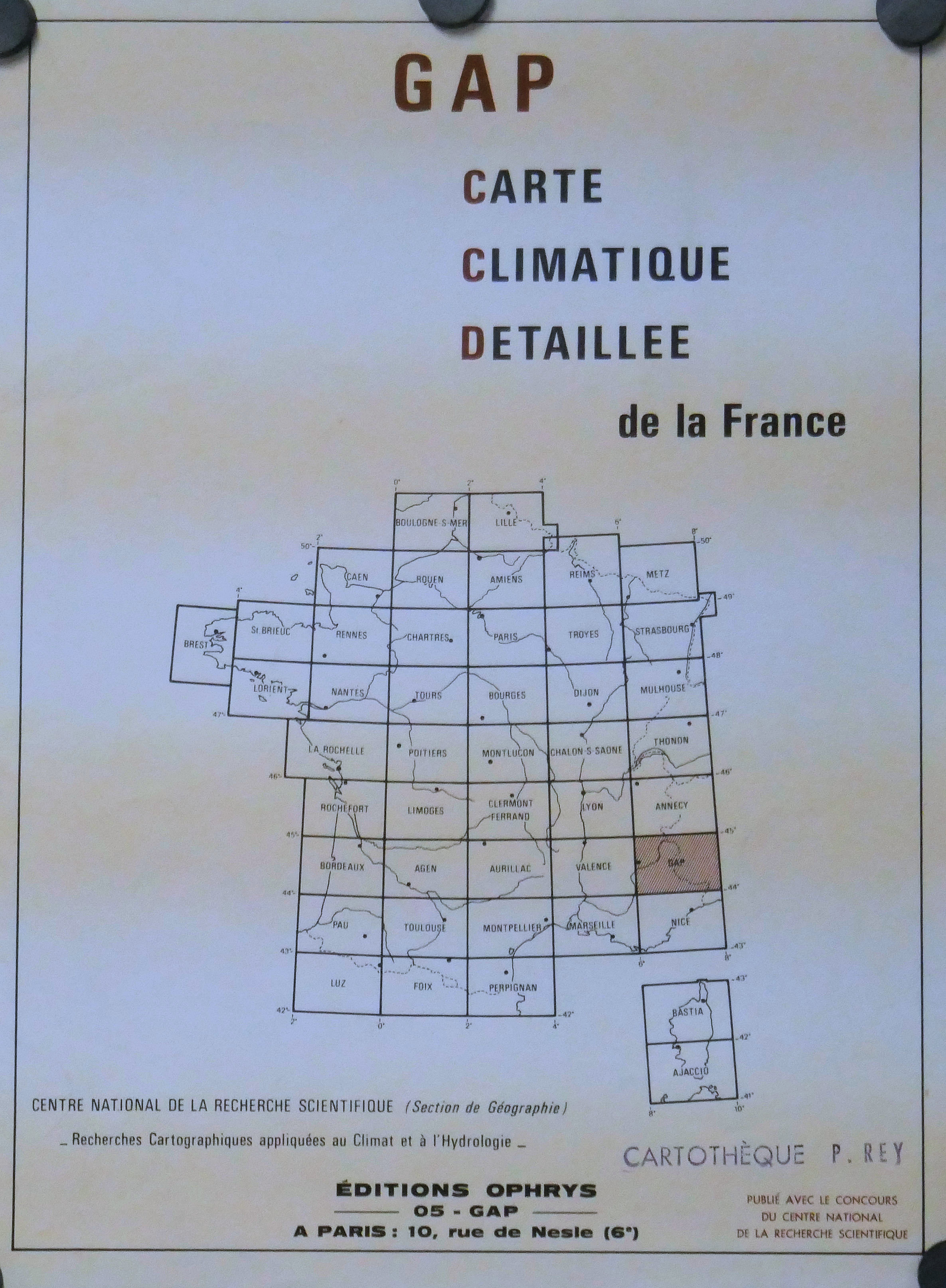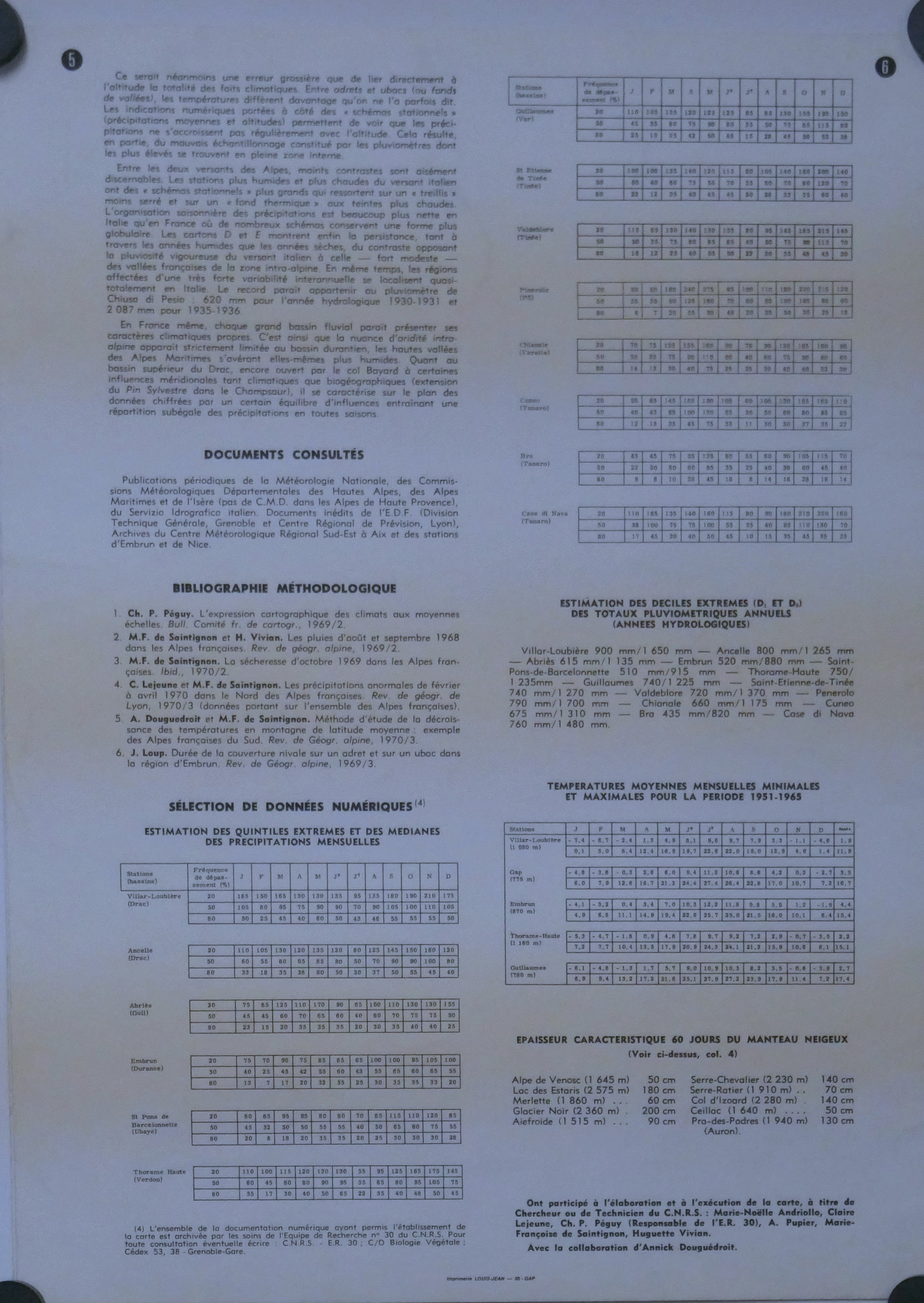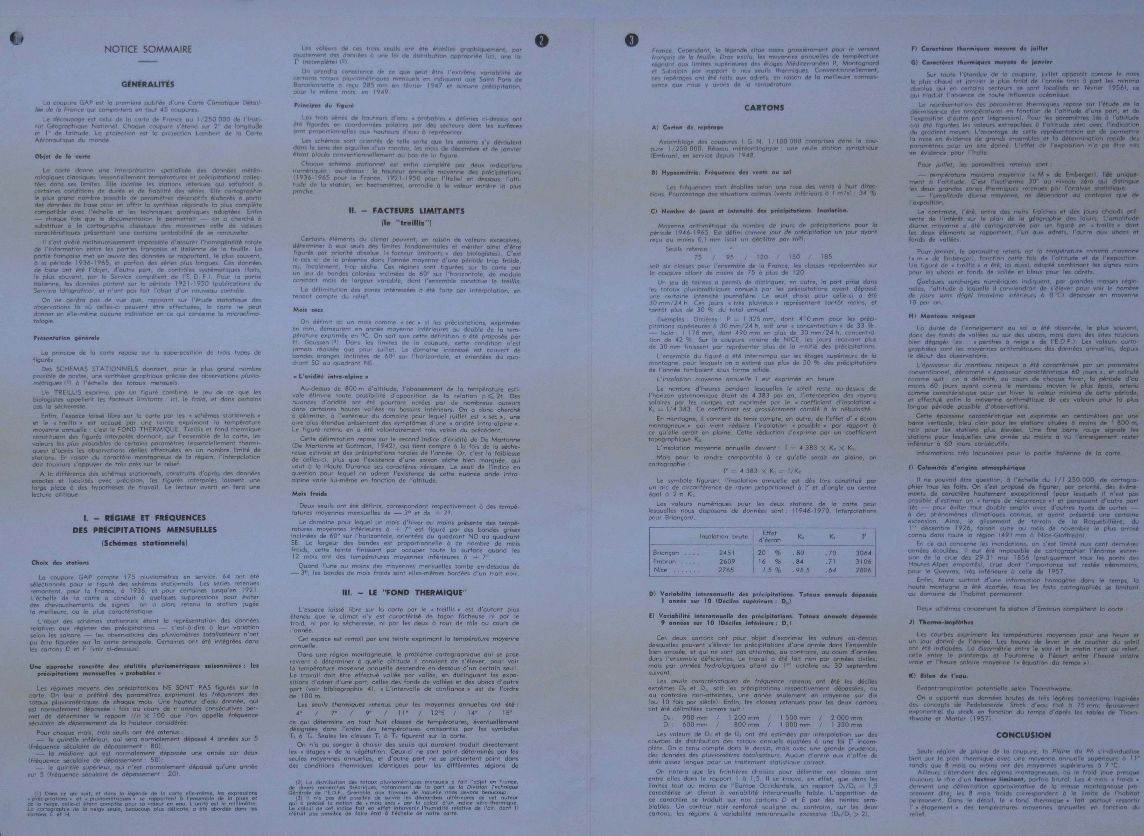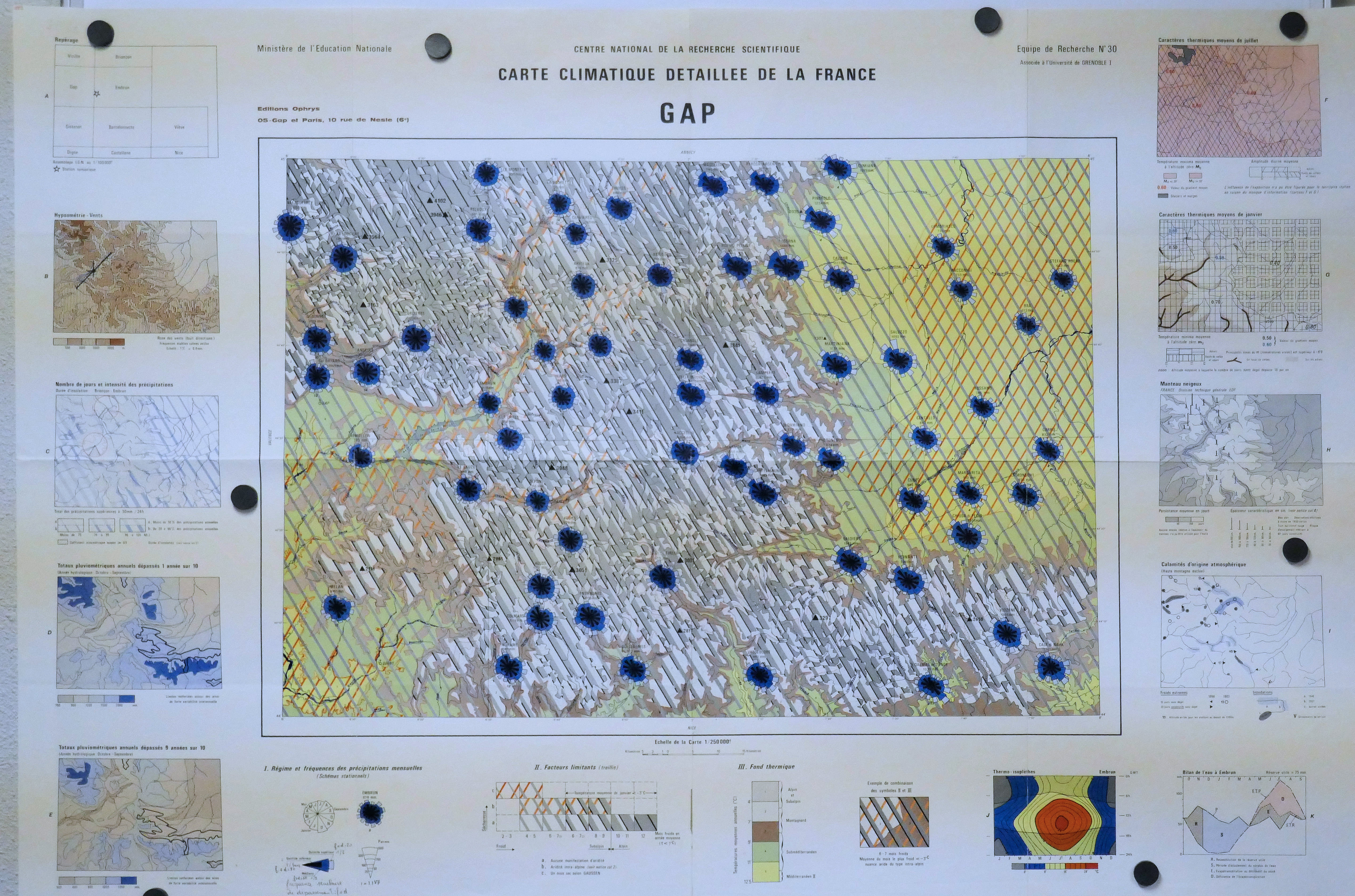 Carte climatique détaillée de la France au 250 000°, GAP 1970 (4 Feuilles : 1, 2, 3, 4)