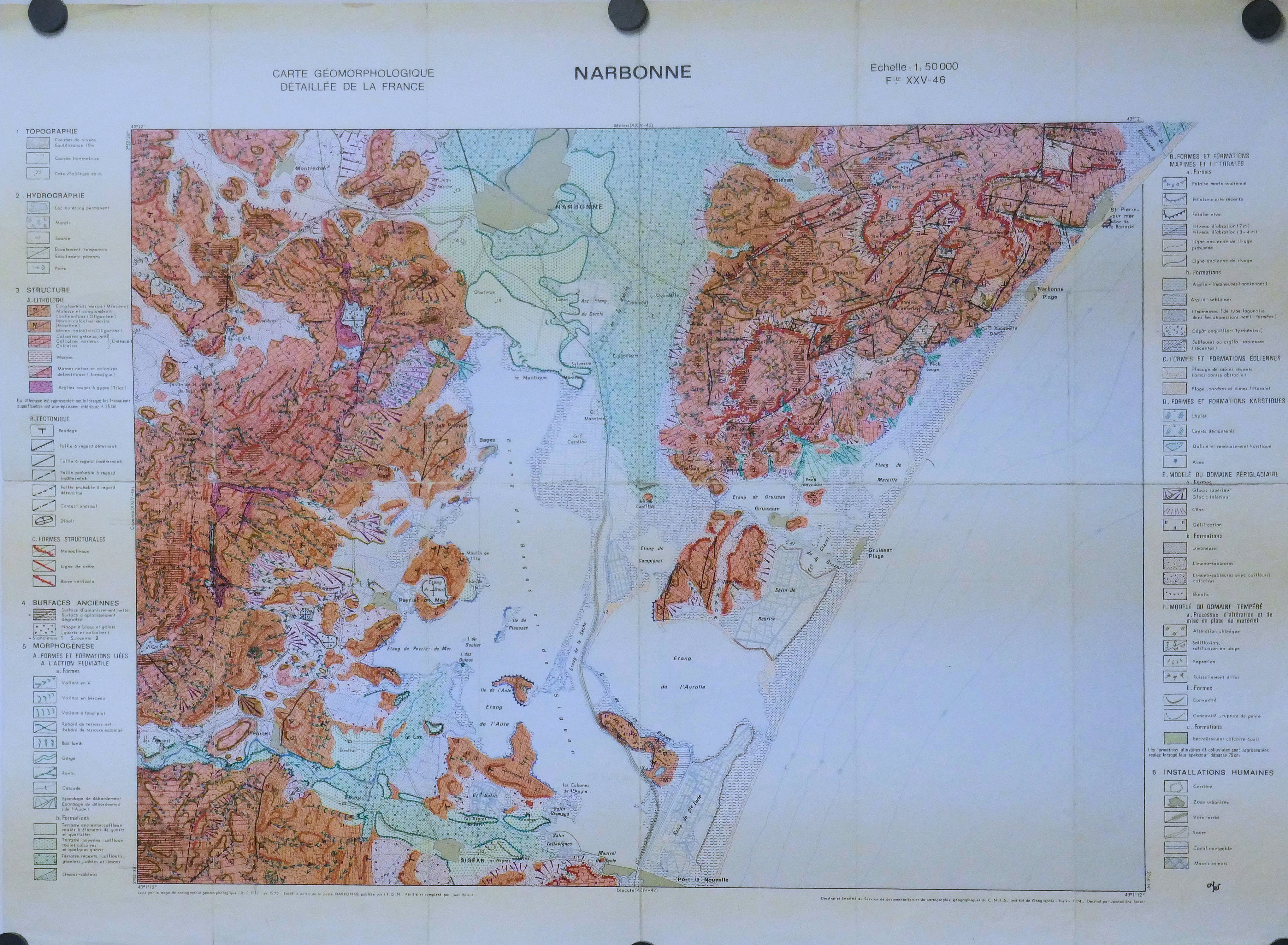 Carte géomorphologique détaillée de la France au 50.000° NARBONNE 1974