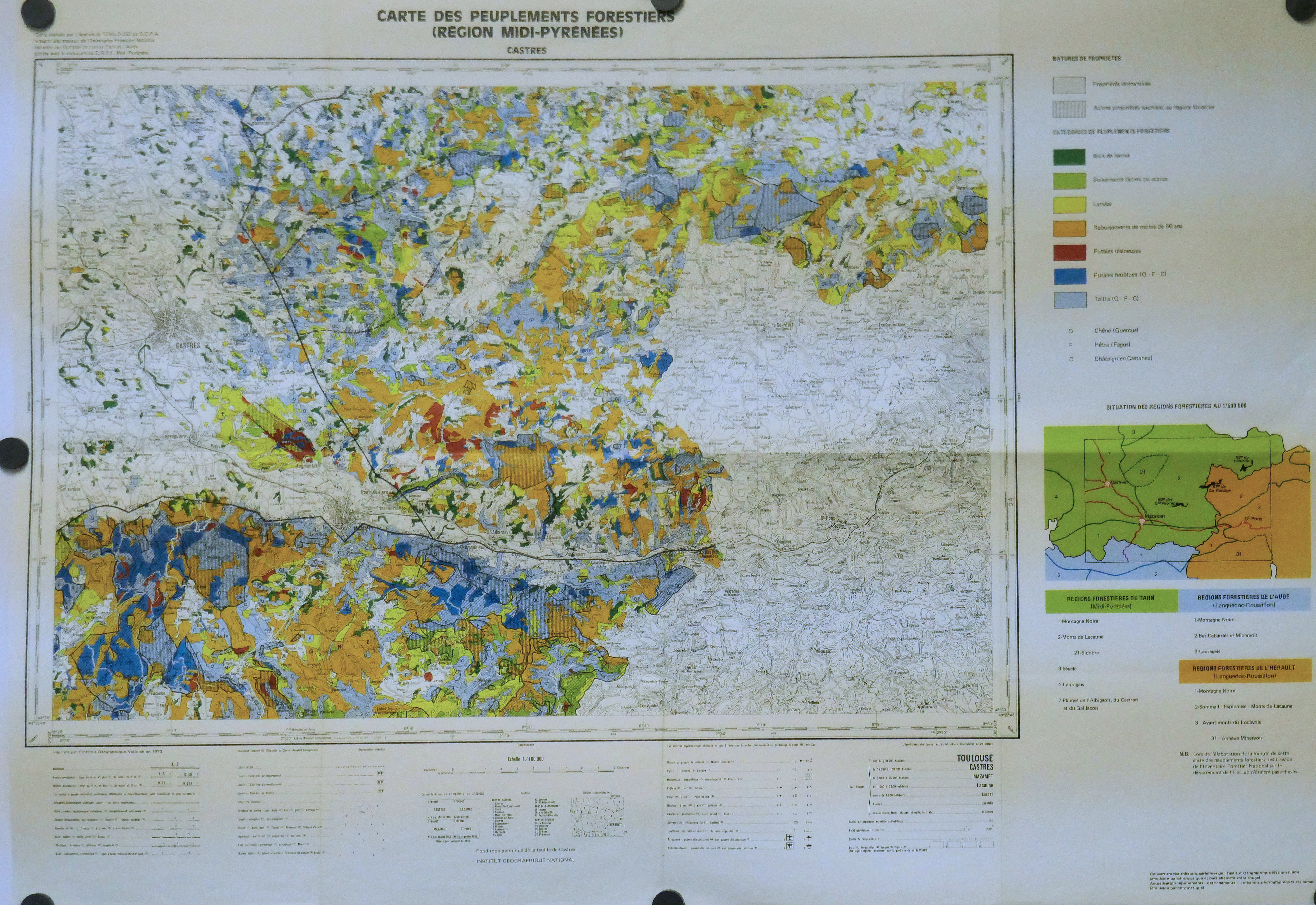 Carte des peuplements forestiers de Midi Pyrénées CASTRES 100.000° 1973