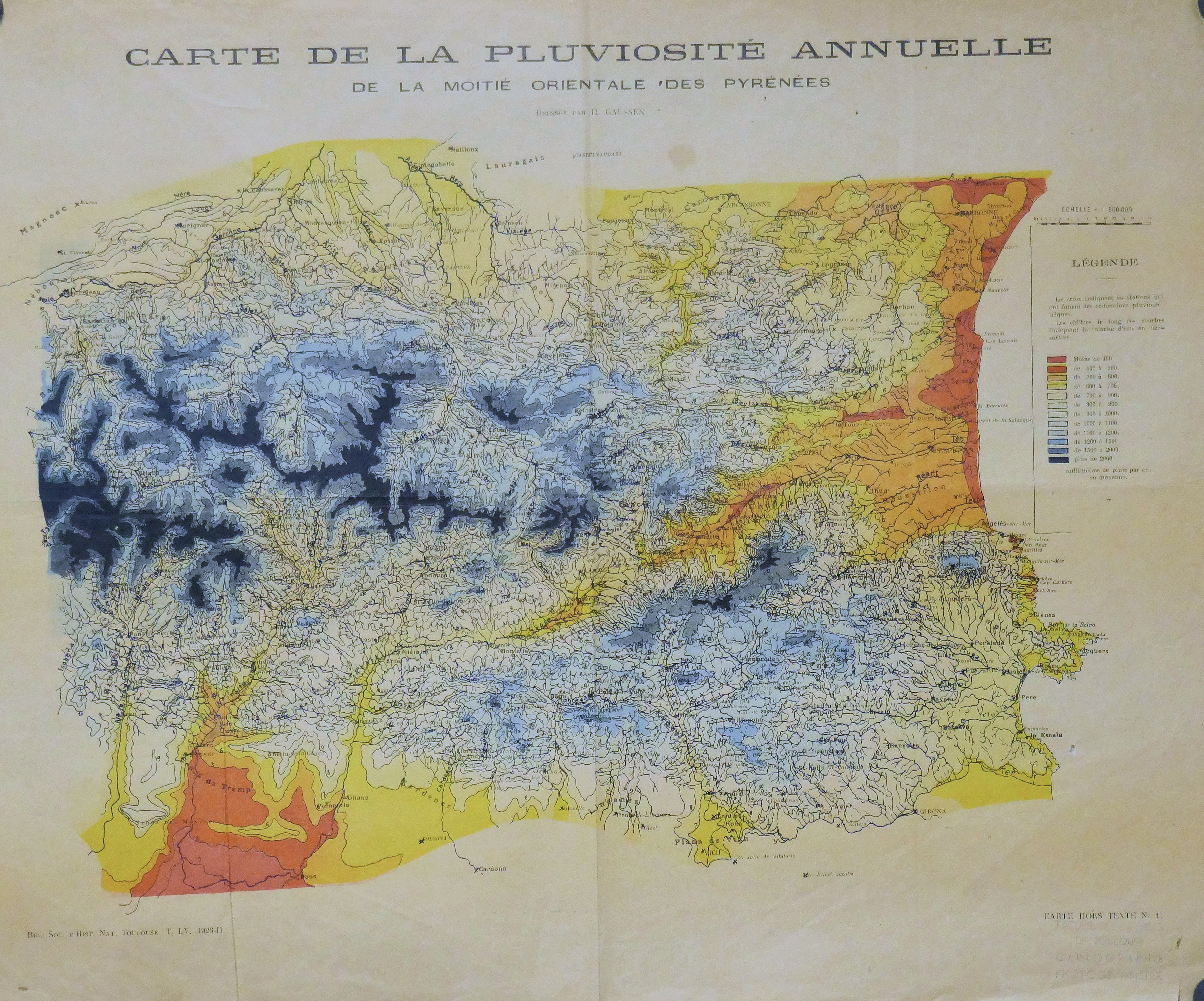 Carte de la Pluviosité annuelle de la moitié orientale des Pyrénées 500.000° 1926