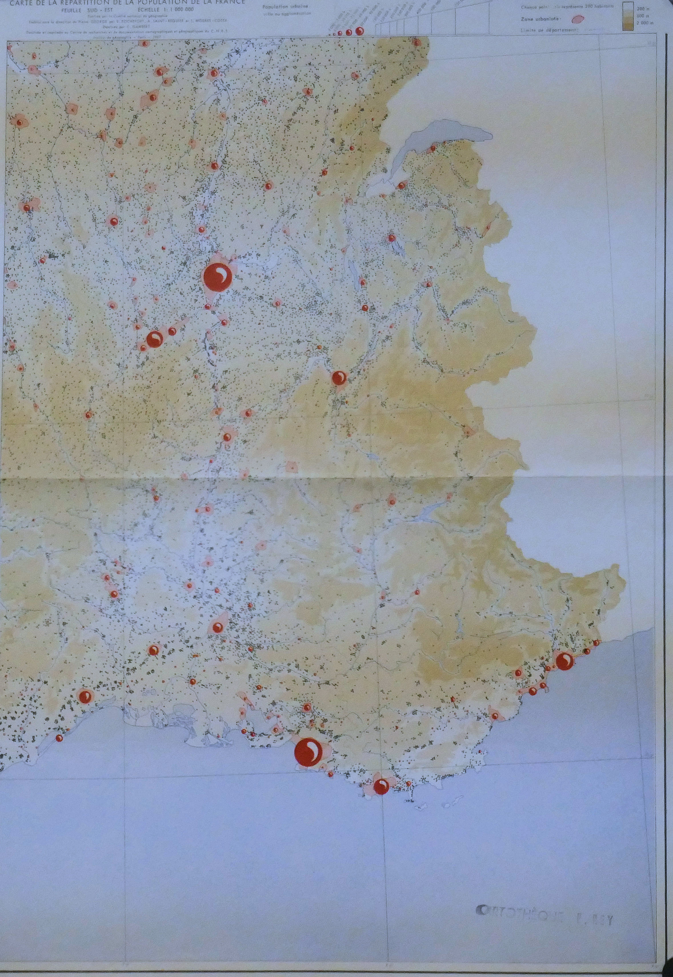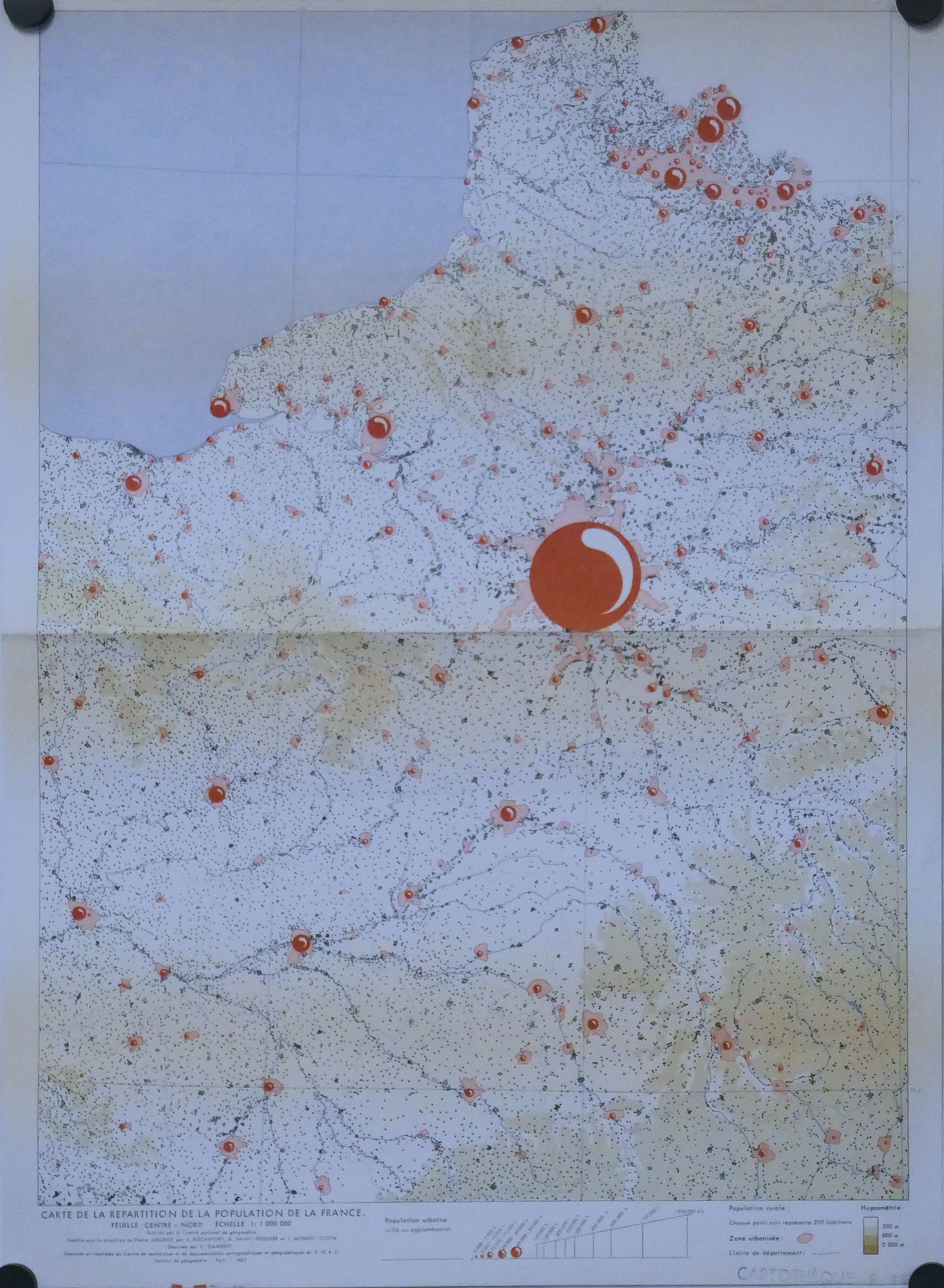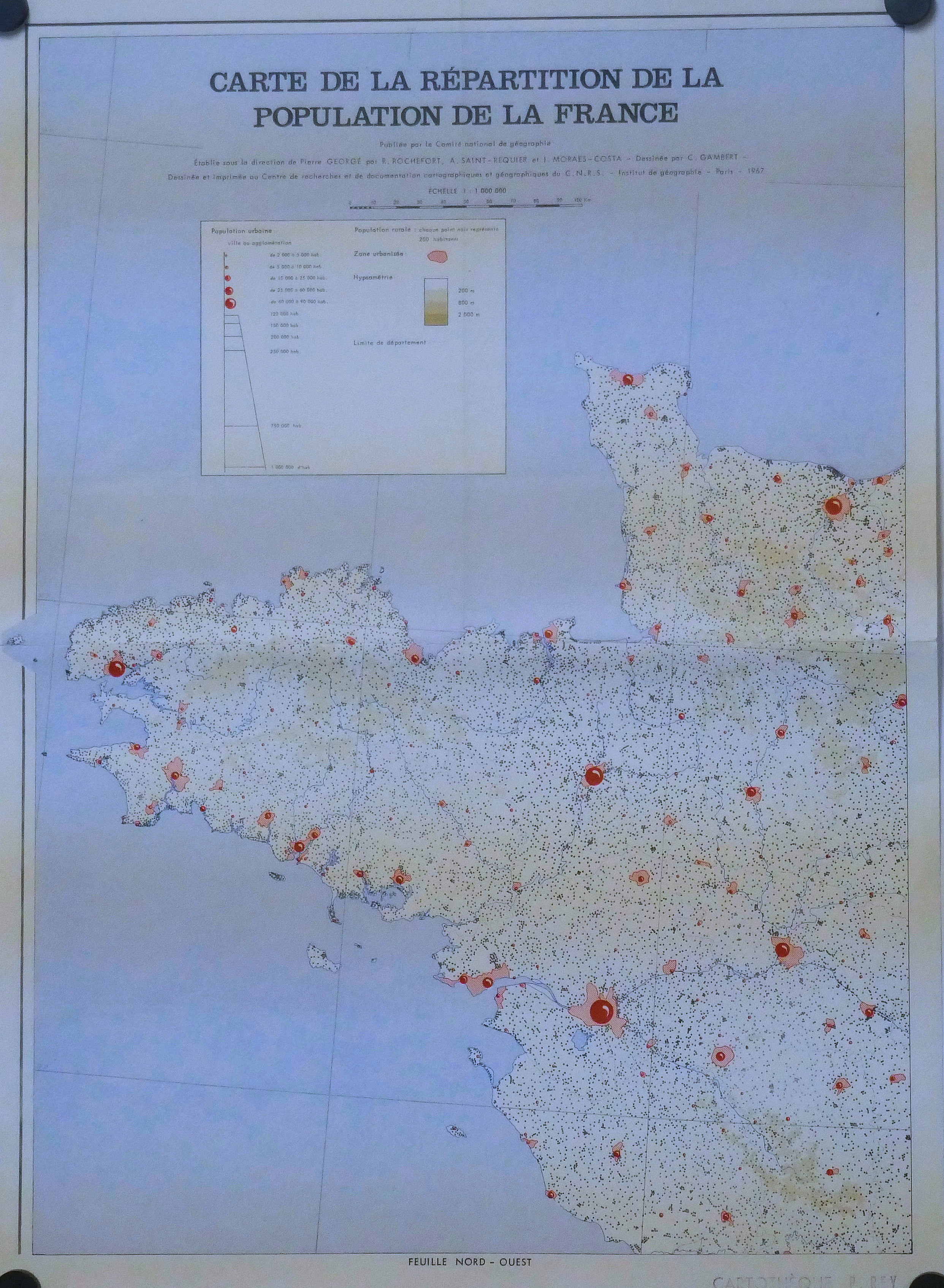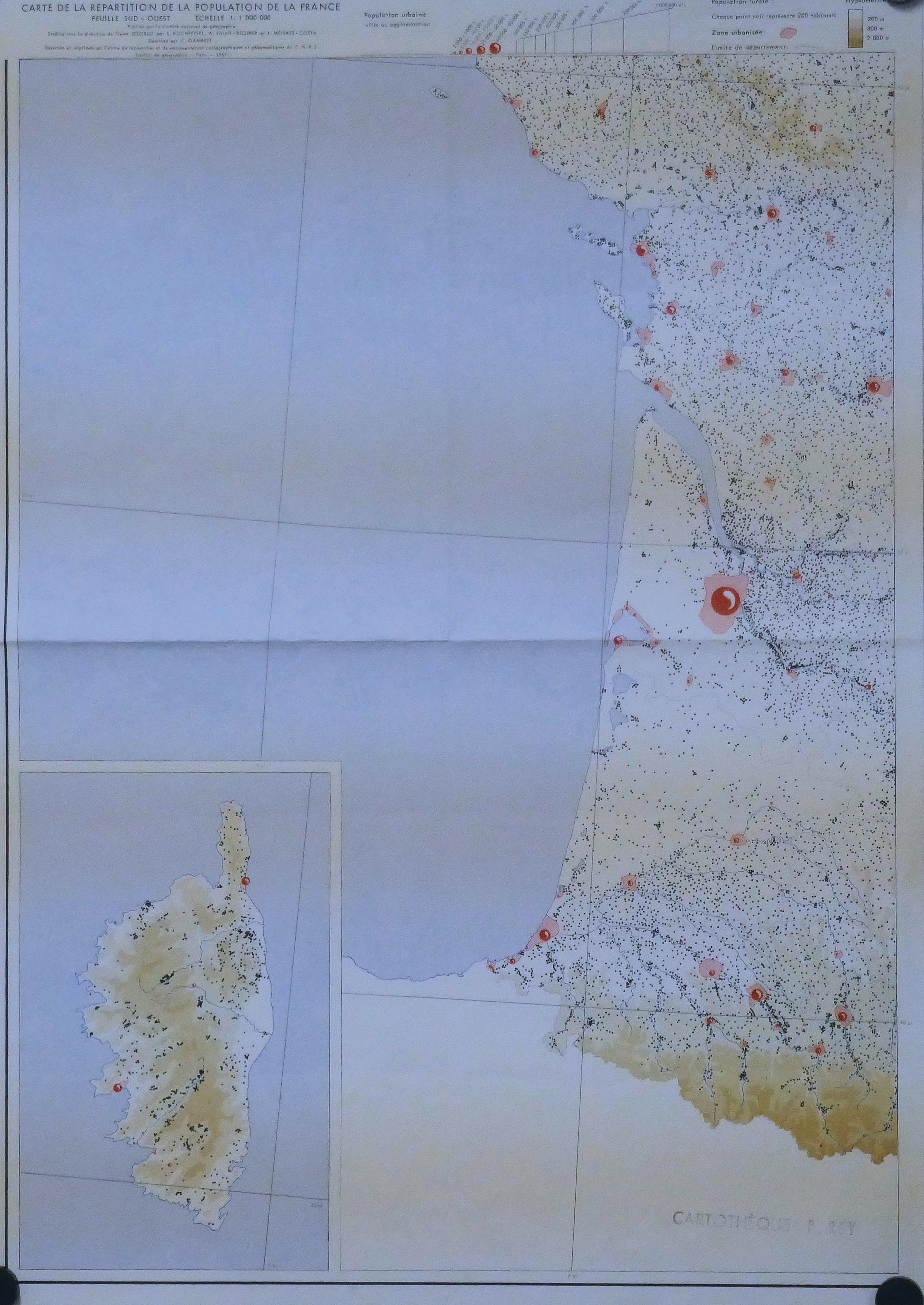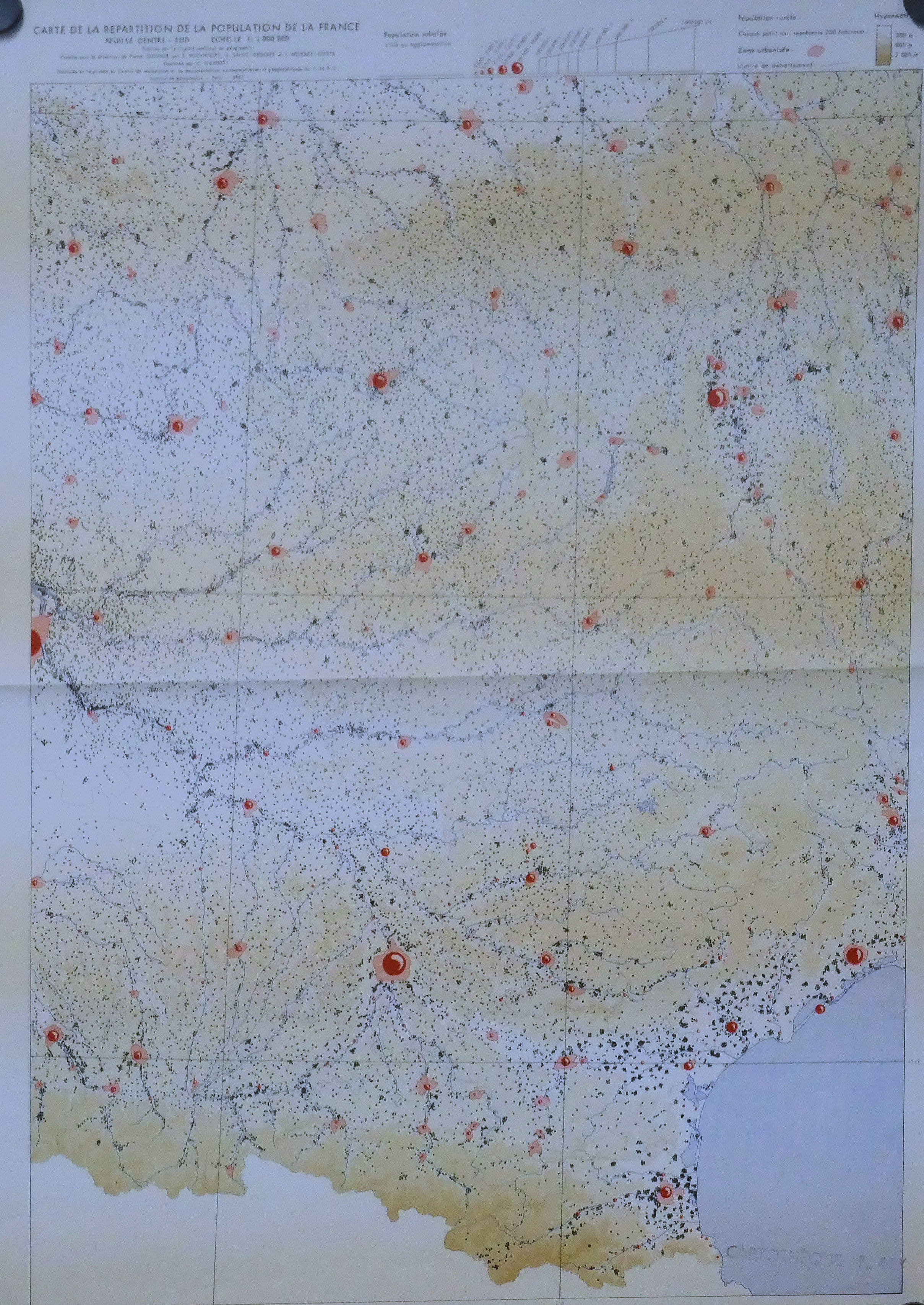 Carte de la Répartition de la Population en France 6 feuilles (1, 2, 3, 4, 5, 6) 1.000.000° 1967
