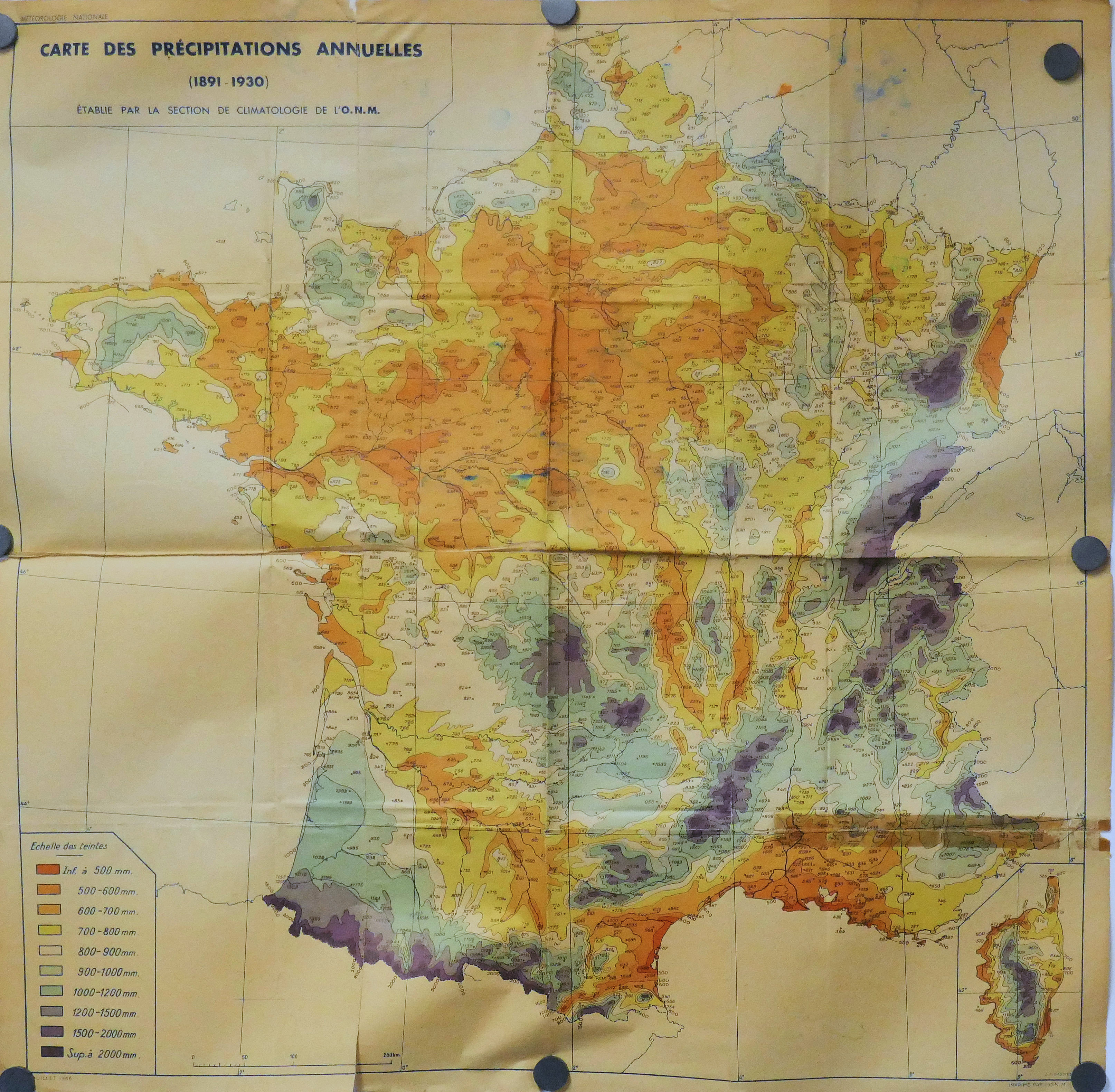 Carte des Précipitations annuelles 1891-1930 ONM 10.000.000° 1946
