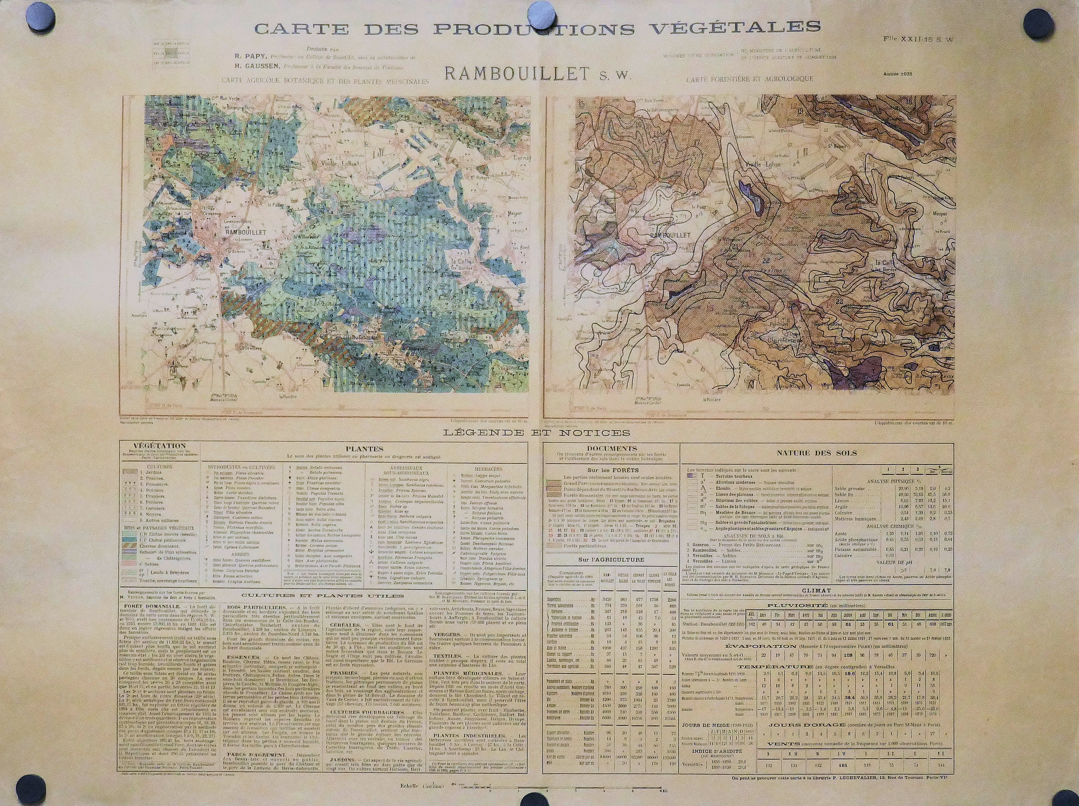 Carte du Tapis végétal de la France (Atlas de France) 1.000.000° 1954