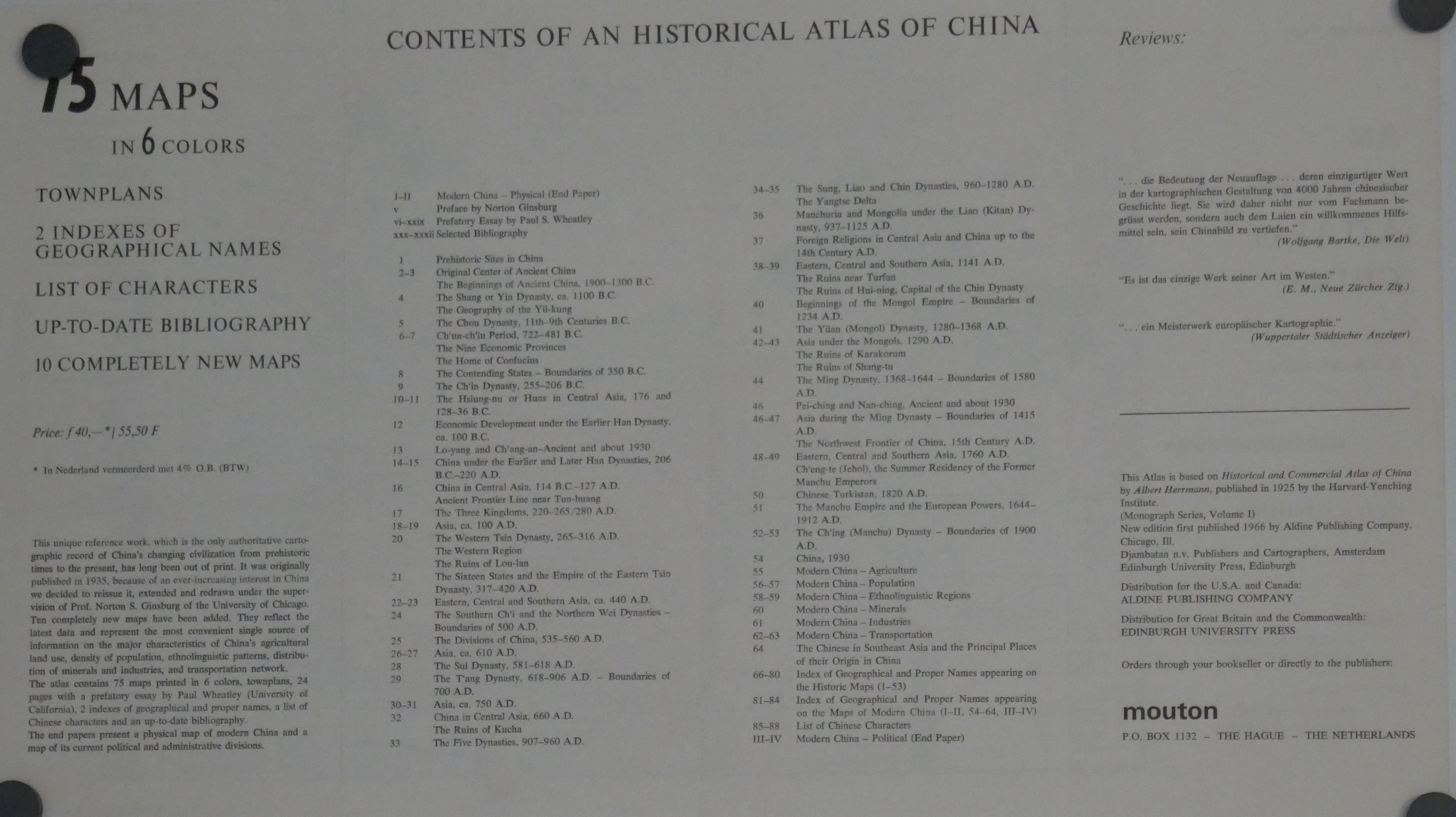 Atlas historique de la Chine (specimen) 15.000.000° sd + Texte
