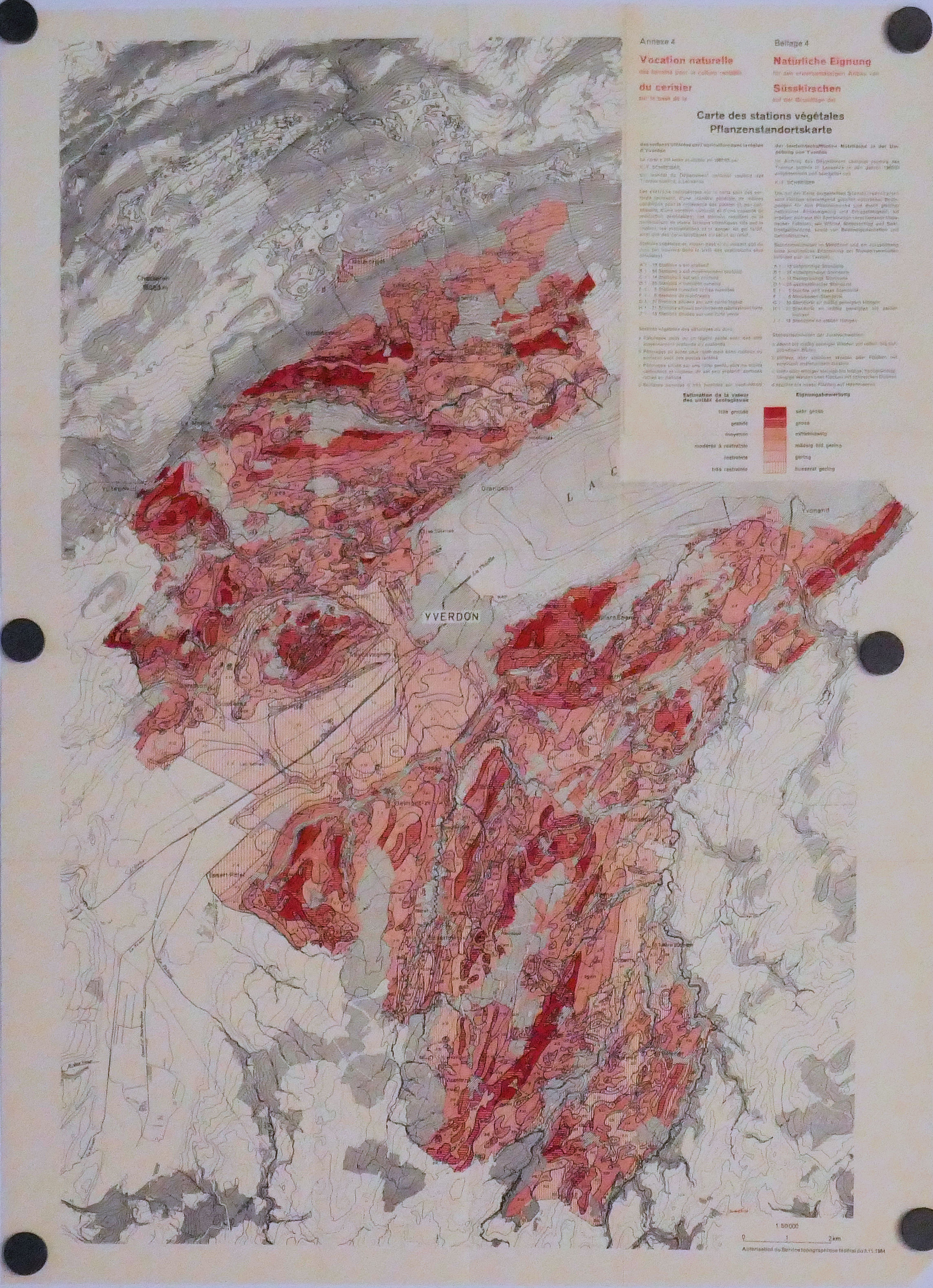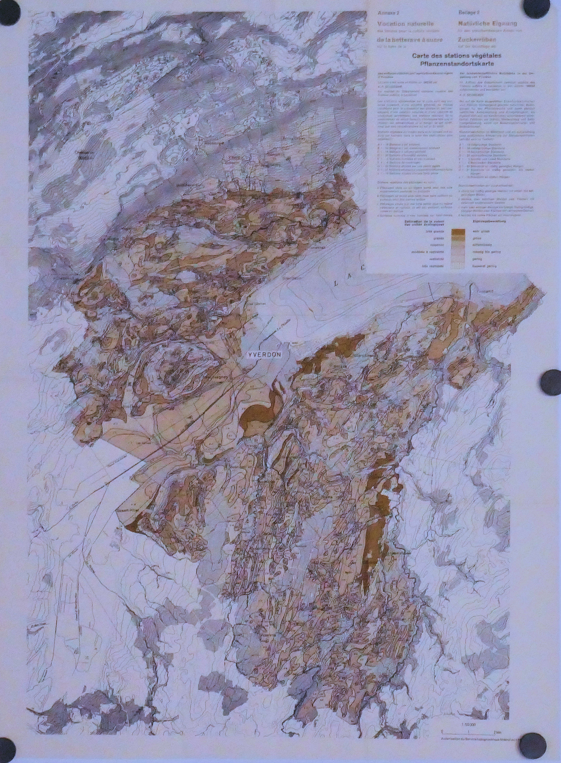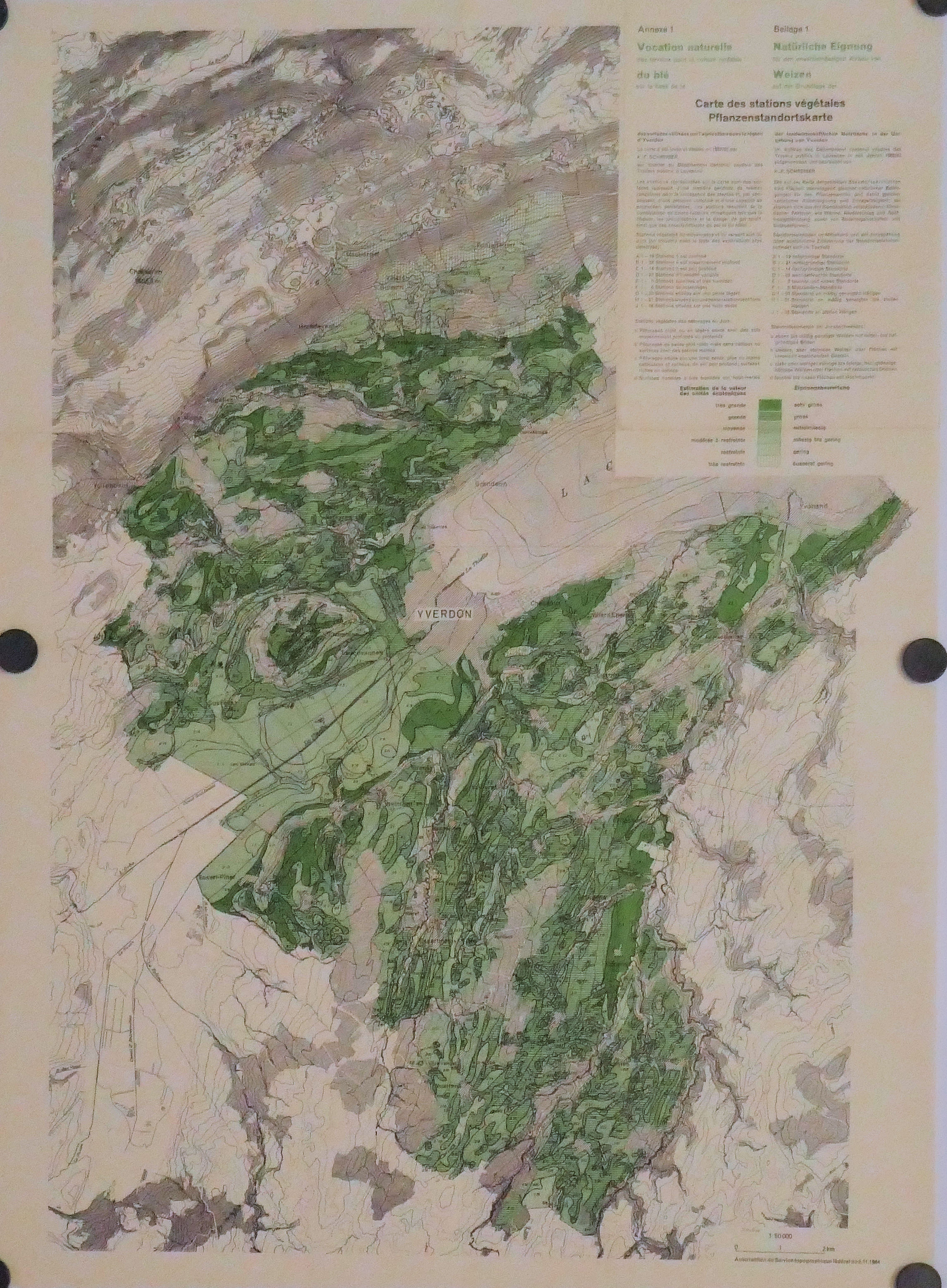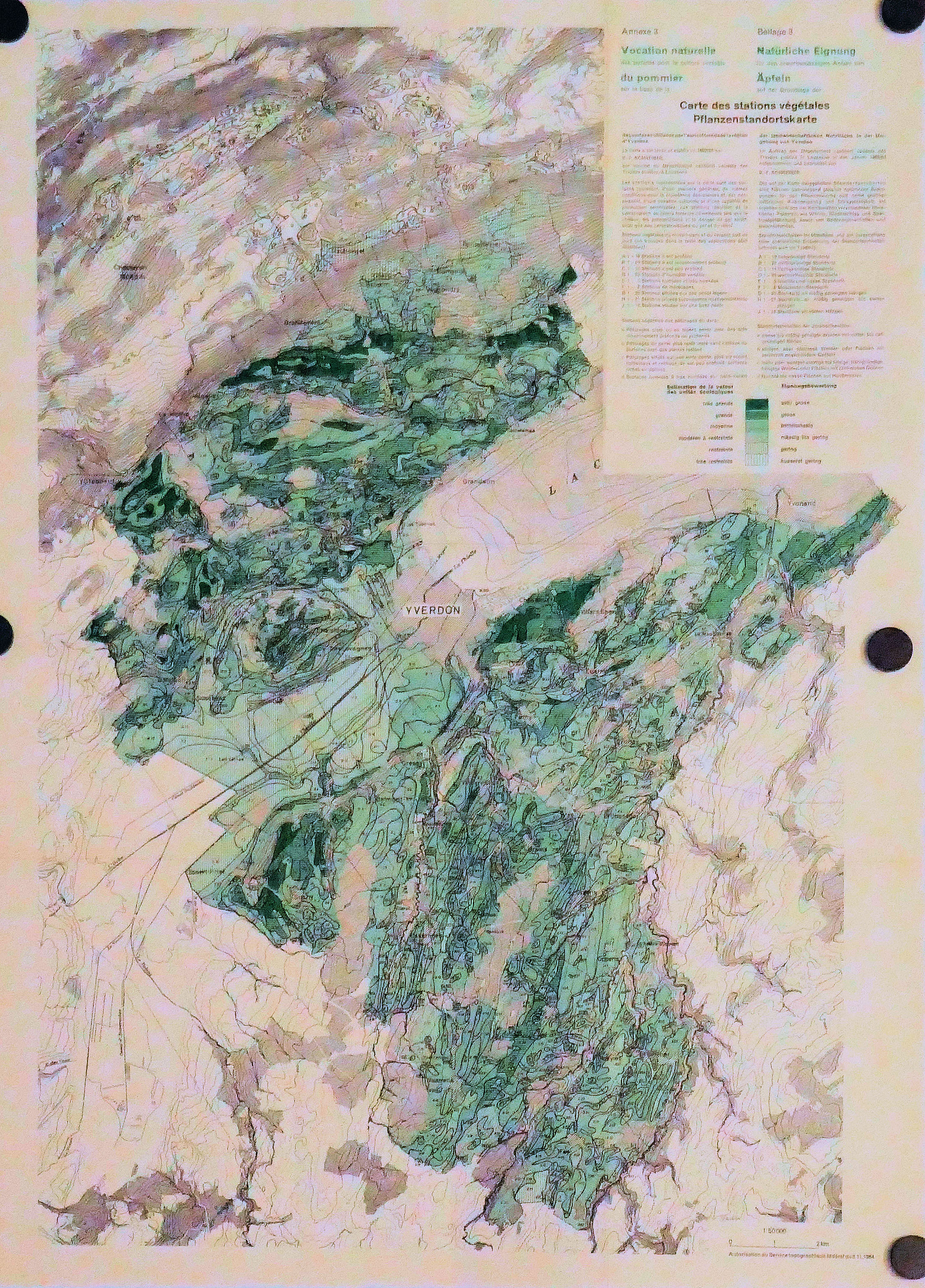 Carte des stations végétales d’YVERDON : Blé, Betterave, Pommier, Cerisier 50.000° 1964
