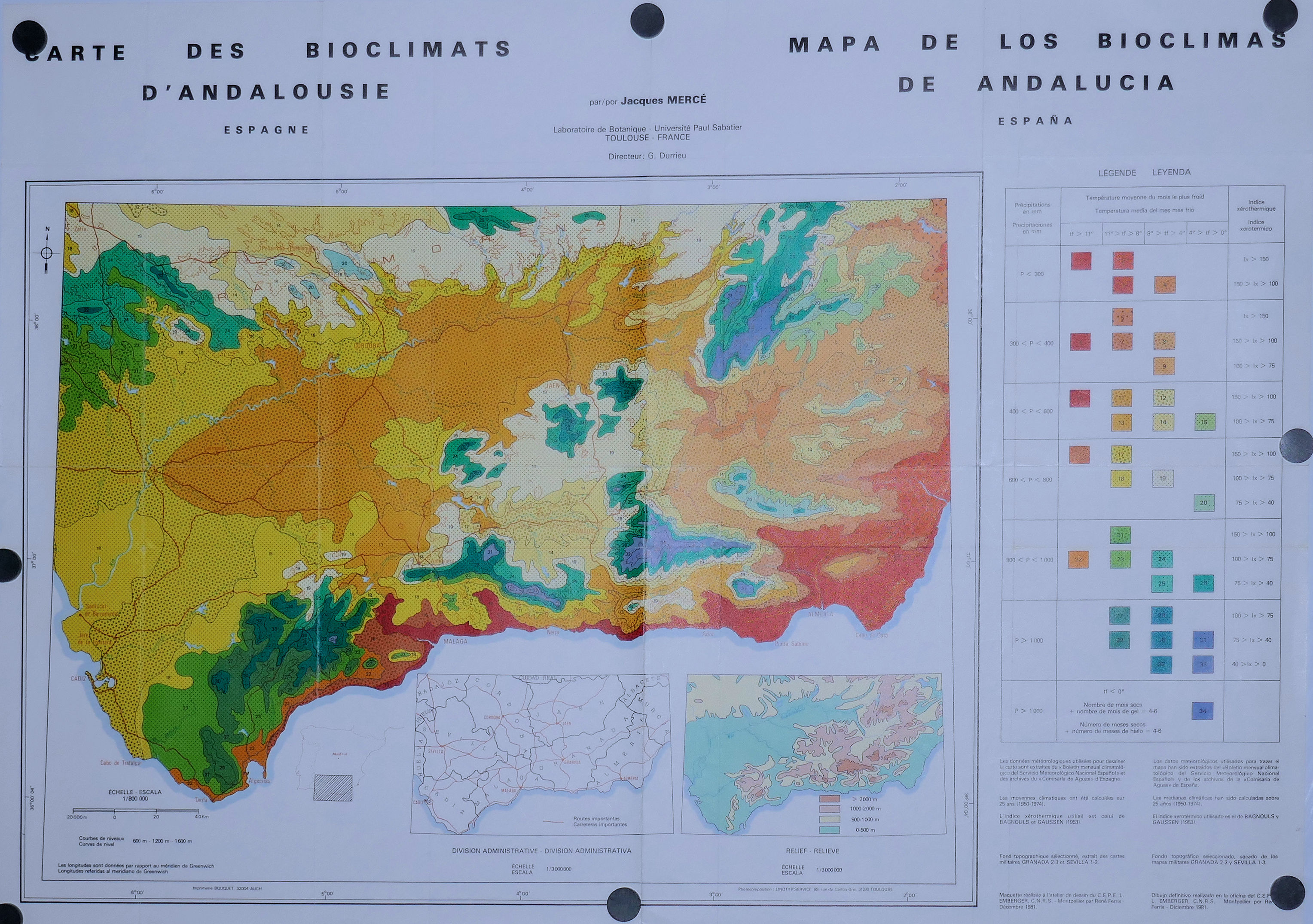 Carte des Bioclimats d’Andalousie 800.000° 1981