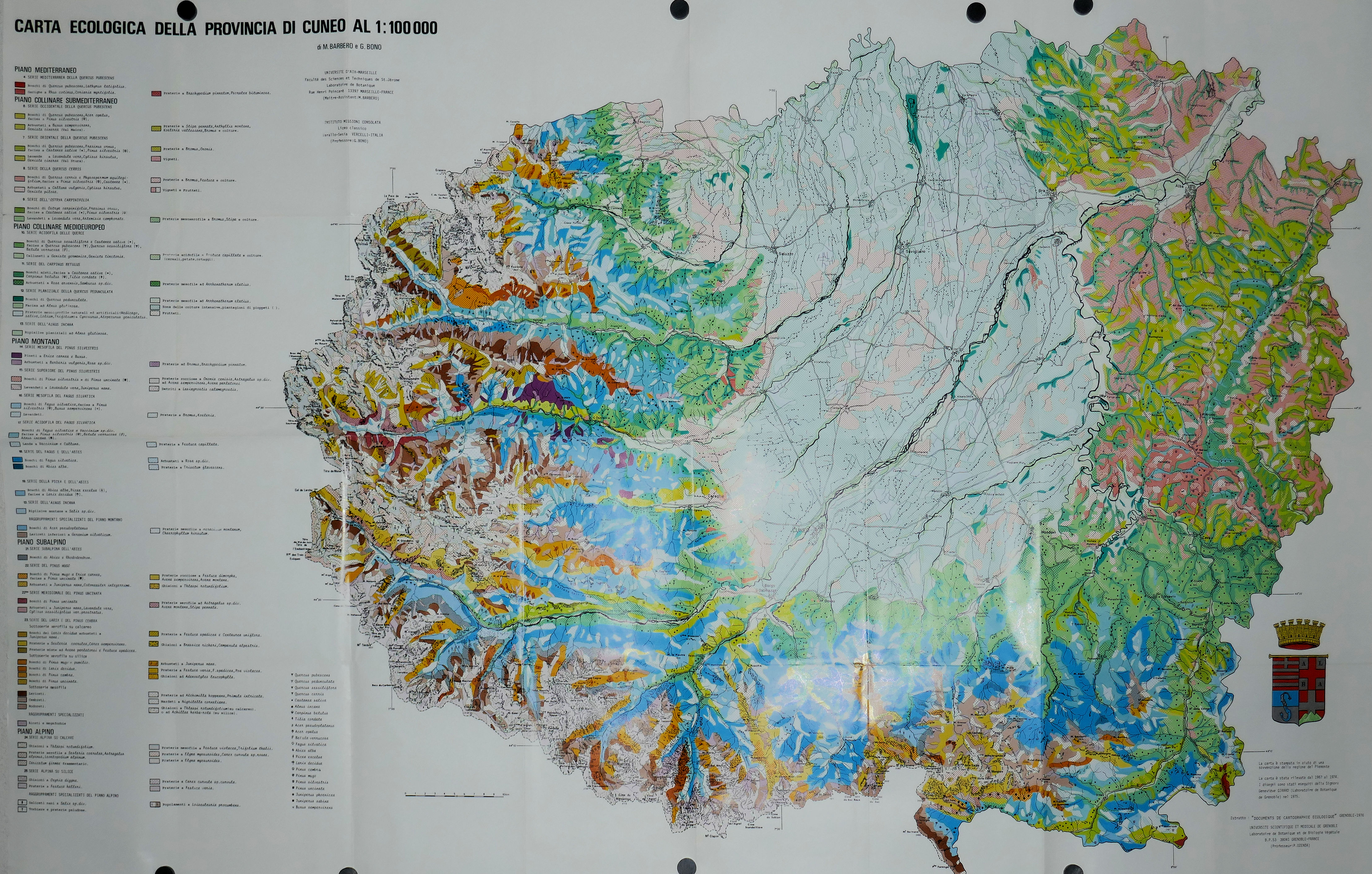 Carte écologique de la Province de CUNEO 100.000° 1976 (Ecole de Grenoble)