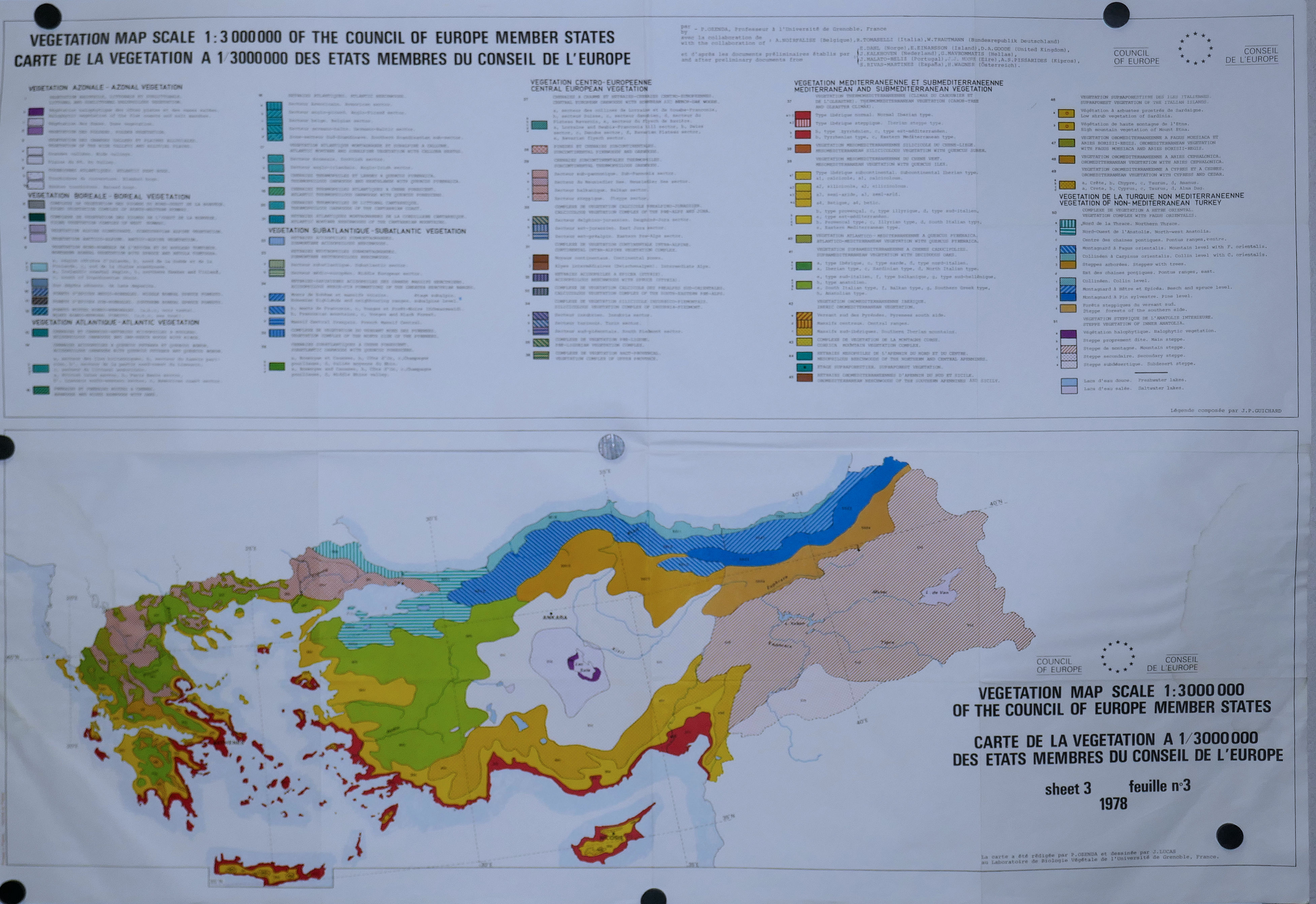 Carte de la Végétation du CONSEIL de l’EUROPE (3 feuilles : 1, 2, 3 ) 3.000.000° 1978