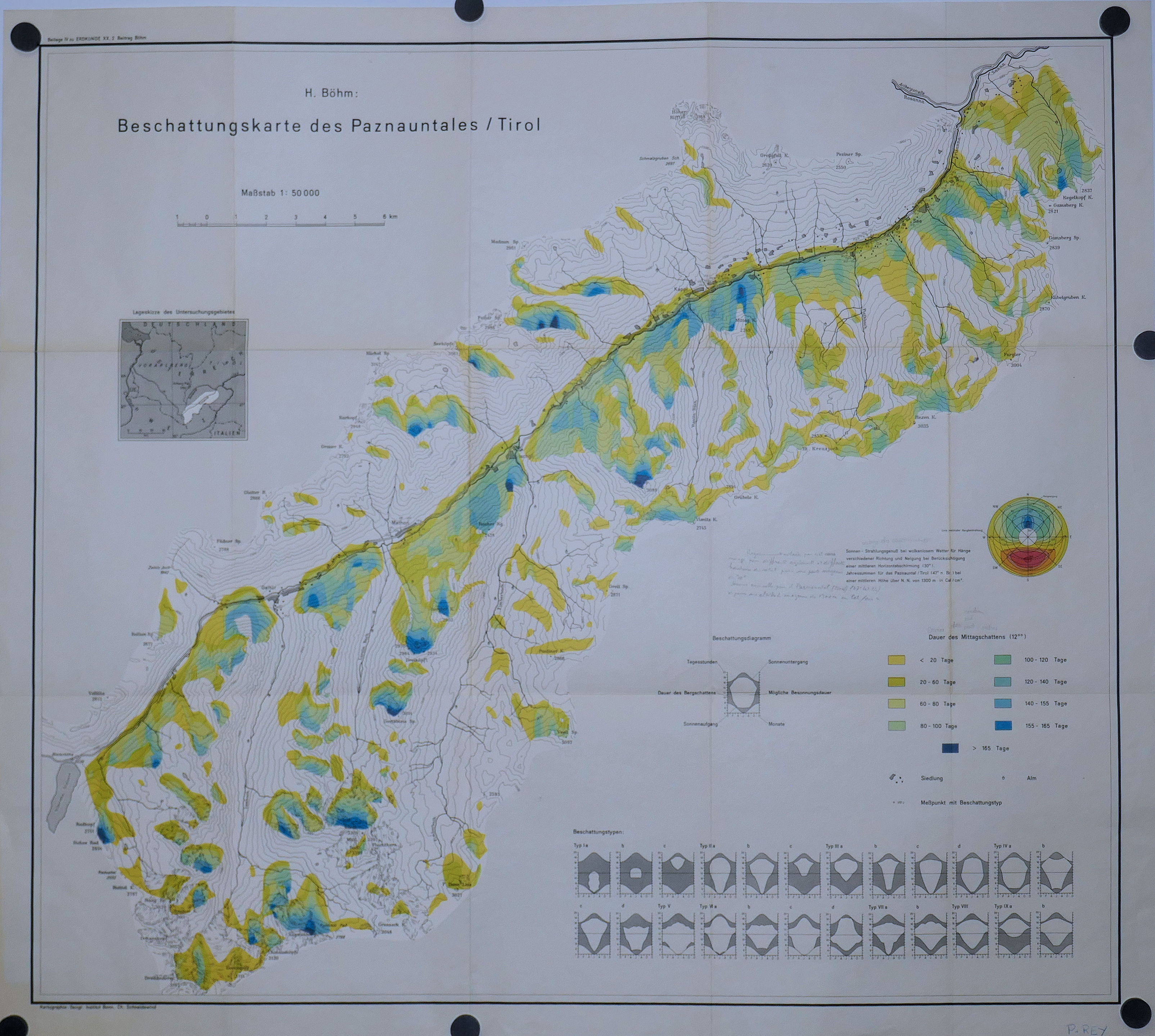 Carte de l’ennombrement ( Beschatung) du Tyrol 10.000° 1964