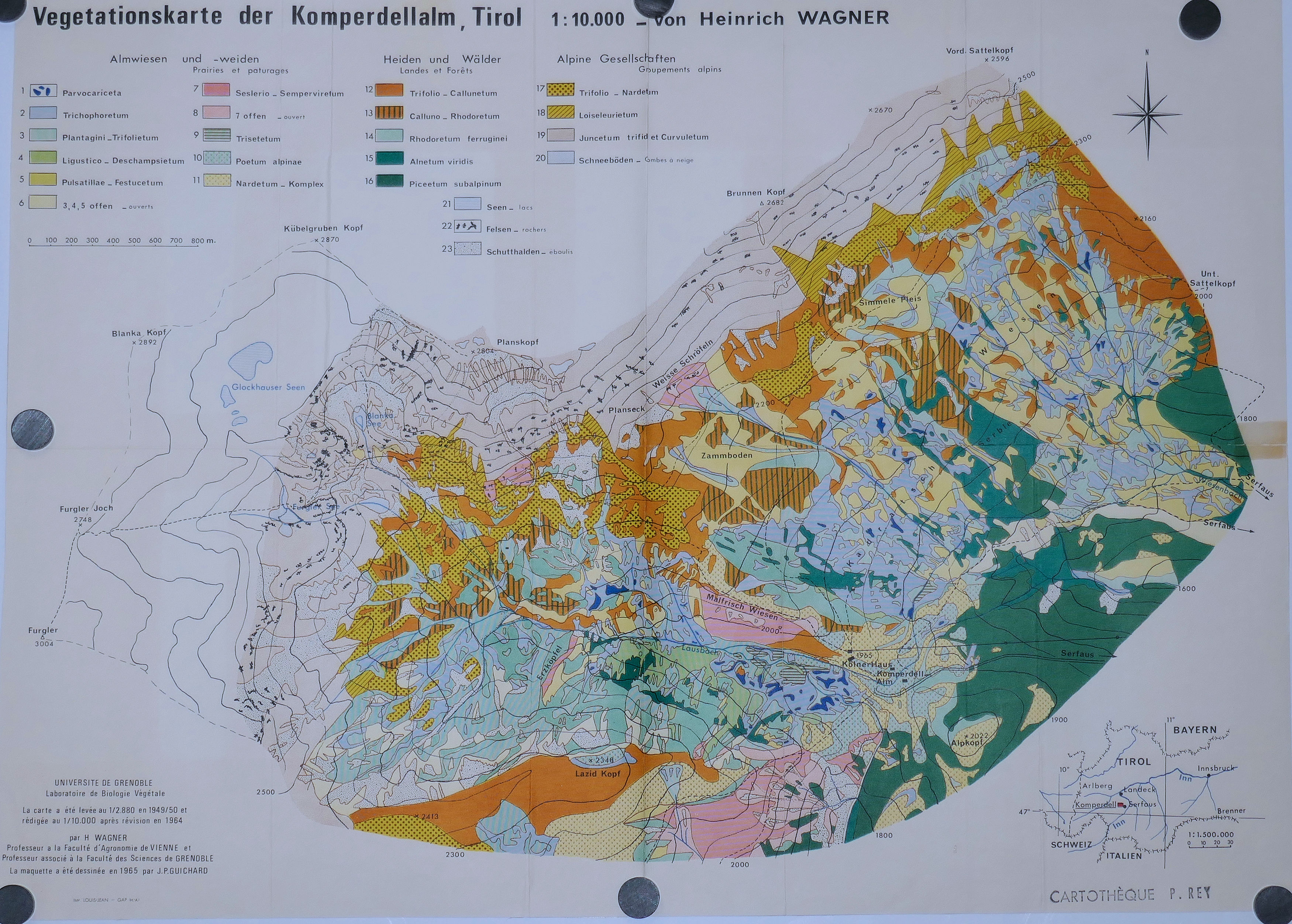 Carte de la Végétation du KOMPERDELLALM Tyrol 10.000° 1964