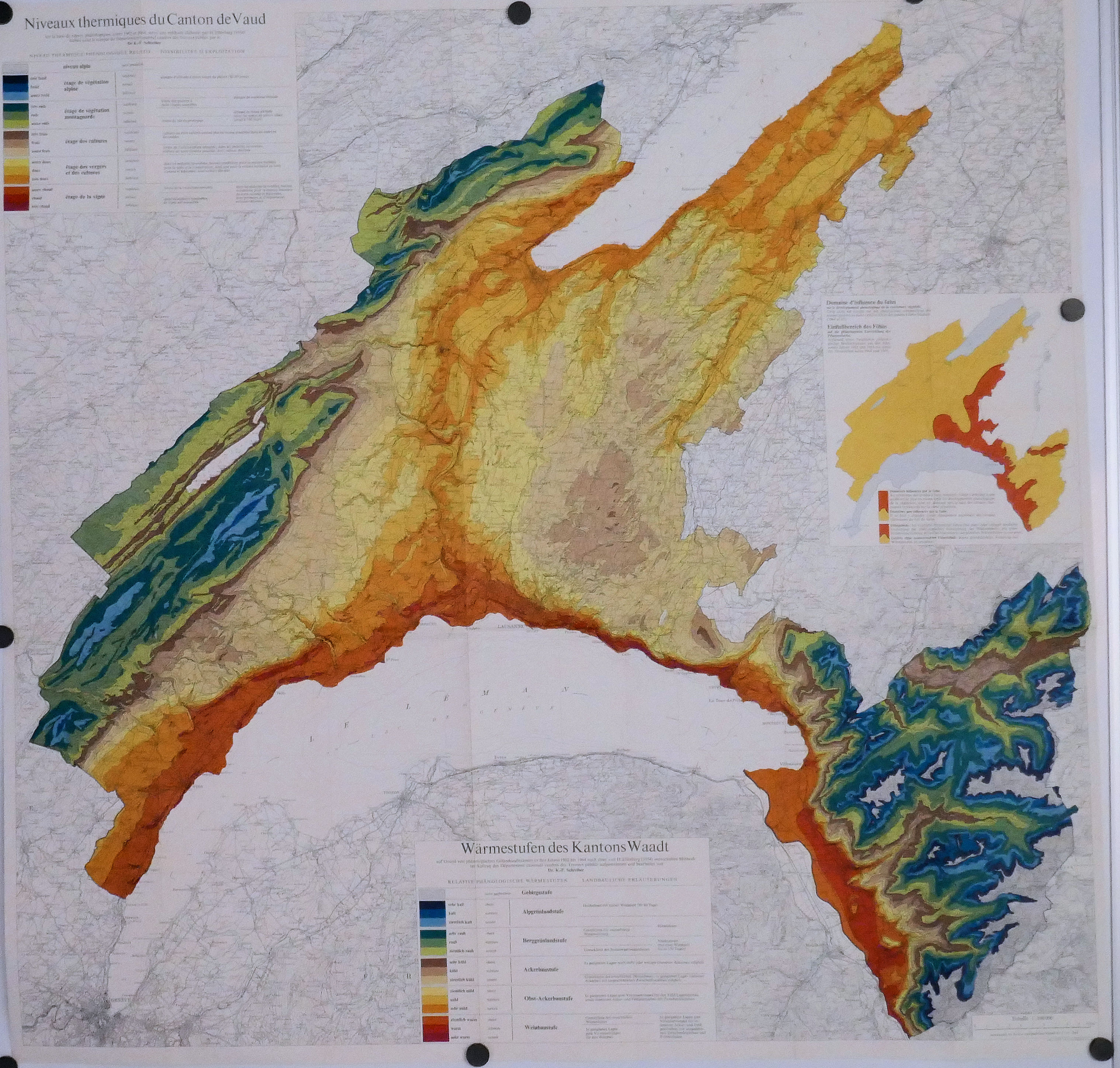 Carte des niveaux thermiques du Canton de VAUD 100.000° 1964