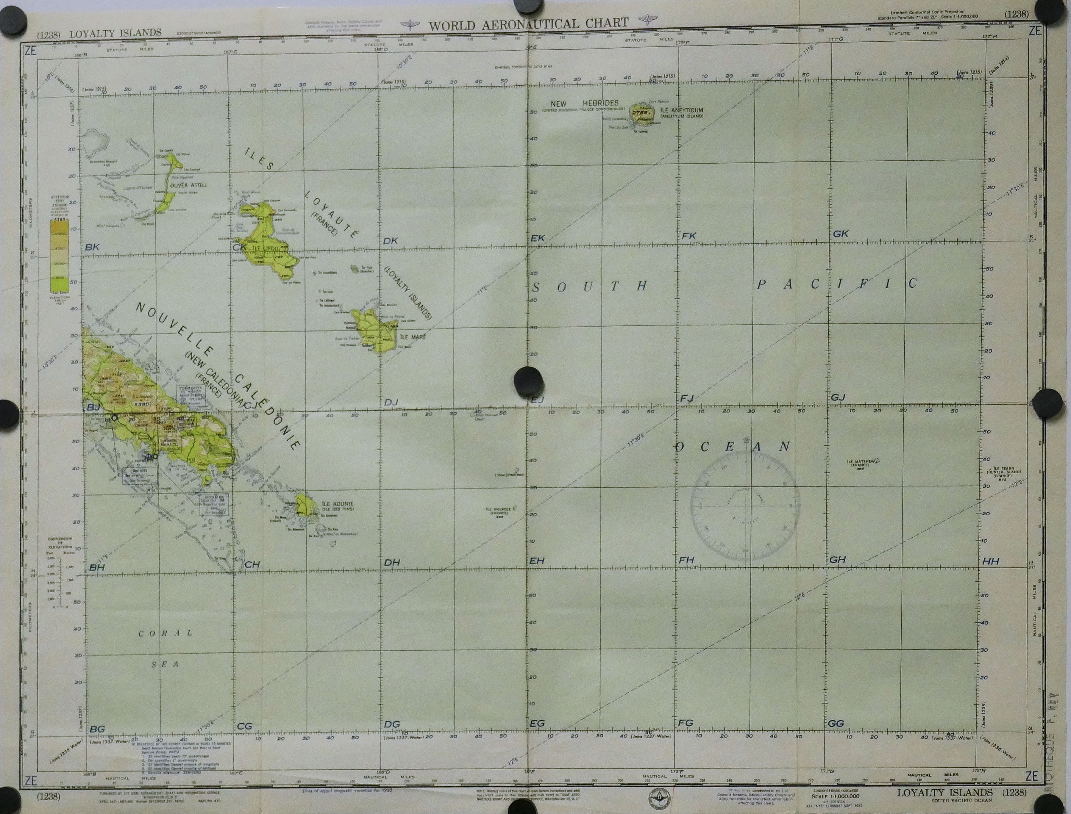 Carte aéronautique Nvle Calédonie, Loyauté 1.000.000° 1958