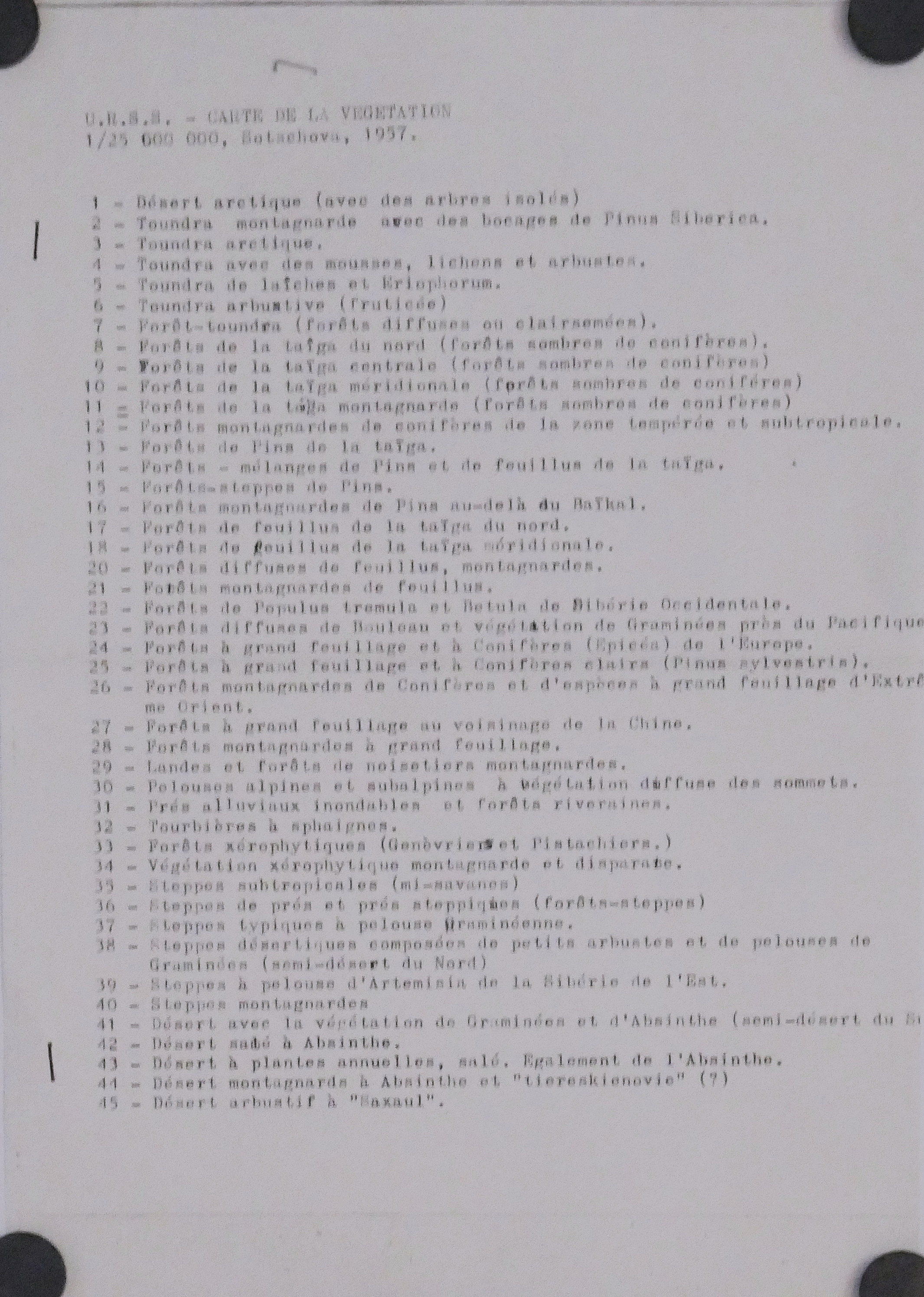 Carte de la Végétation de l’URSS 25.000.000° 1957 (légende traduite)