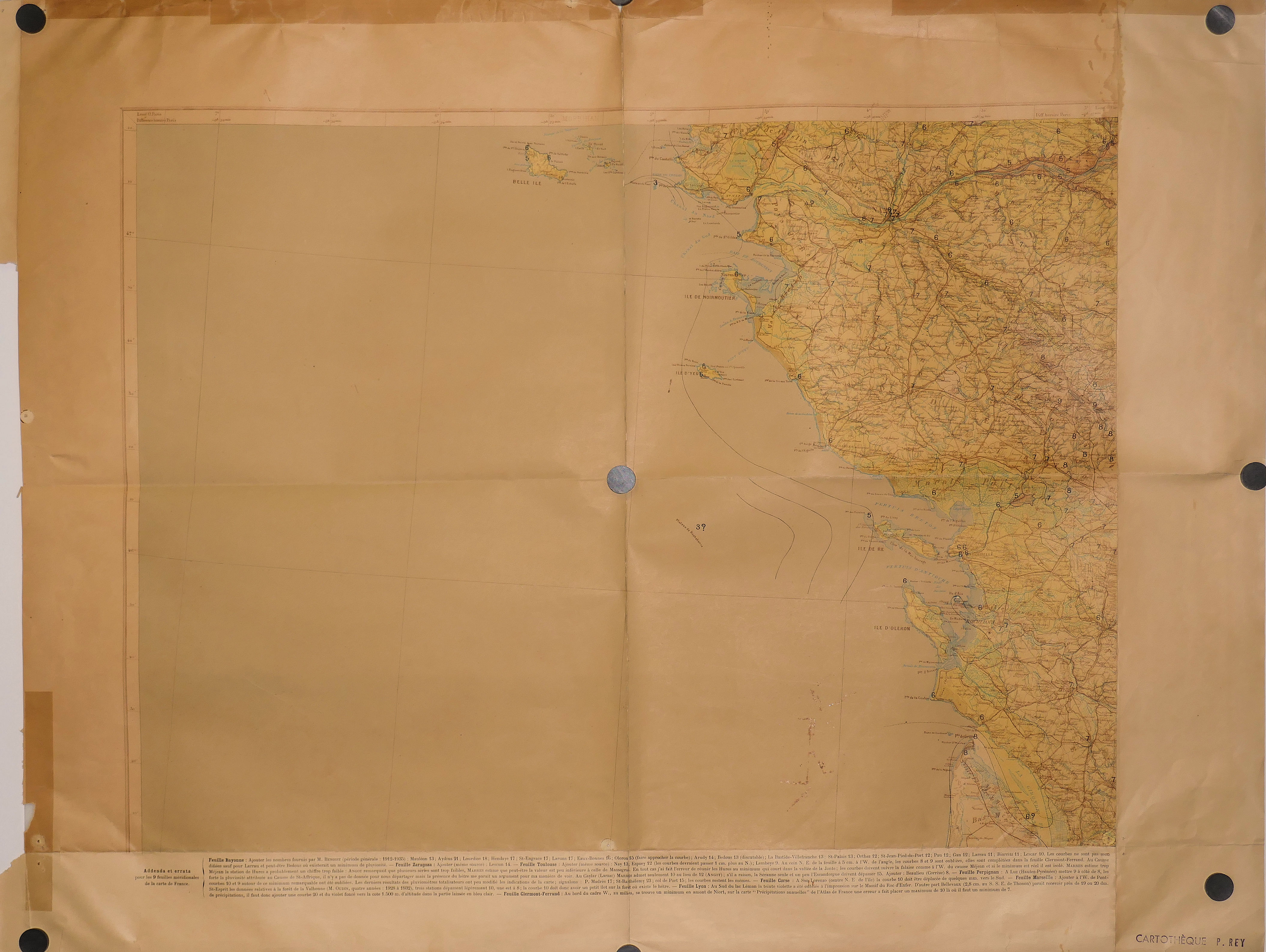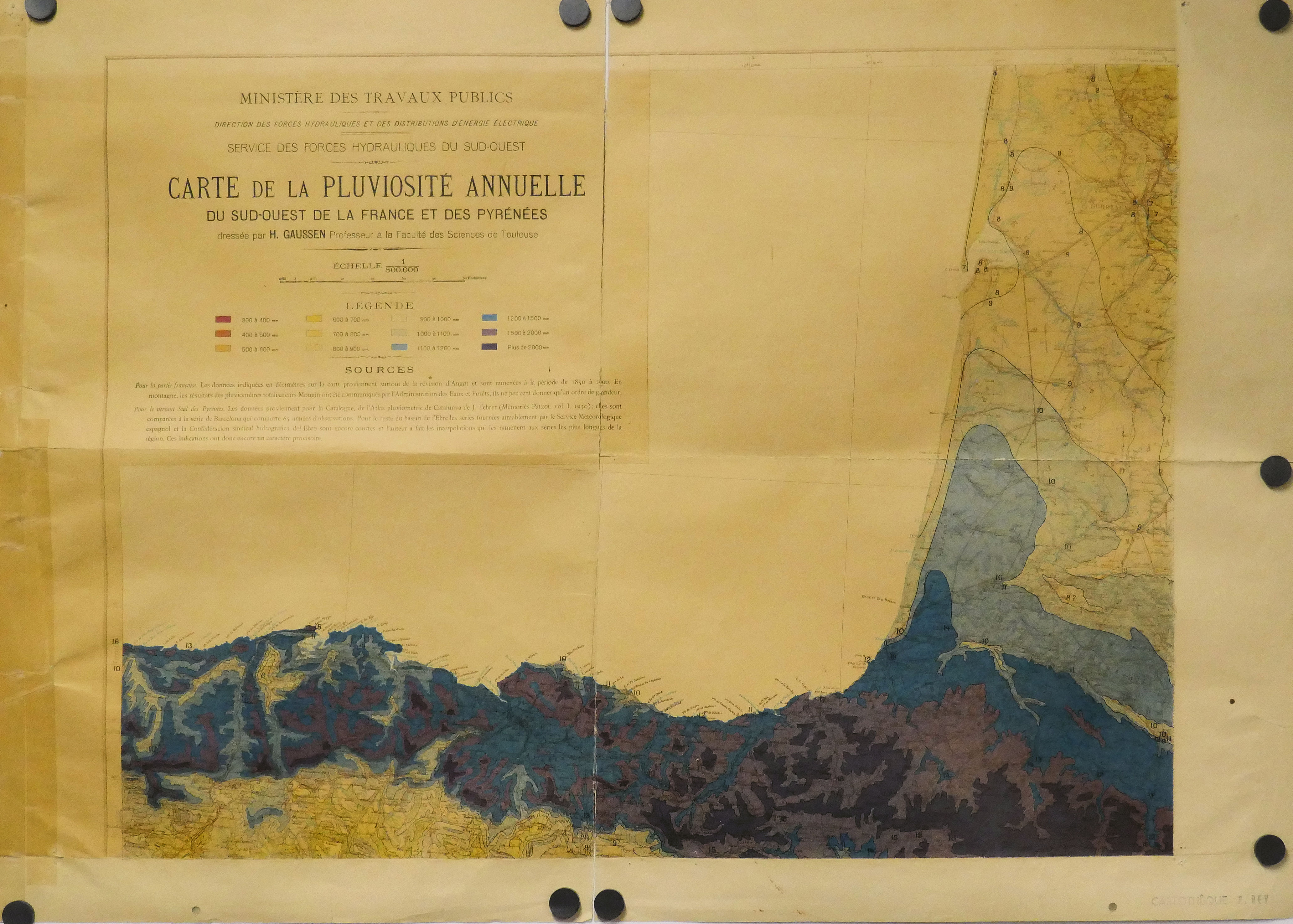 Carte de la pluviosité annuelle du SO de la France et des Pyrénées 500.000° (6 Feuilles : 1, 2, 3, 4, 5, 6 )