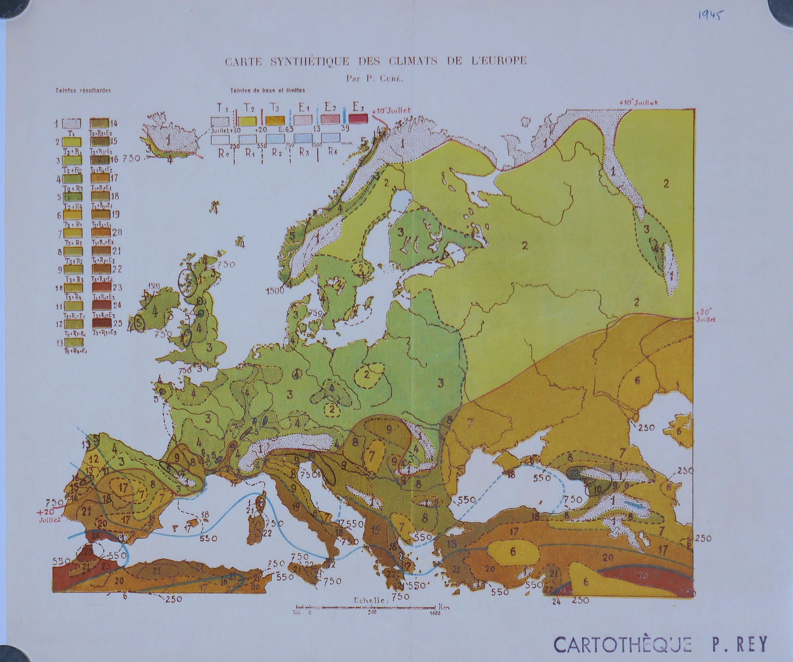 Carte synthétique des Climats de l’Europe 25.000.000° 1946