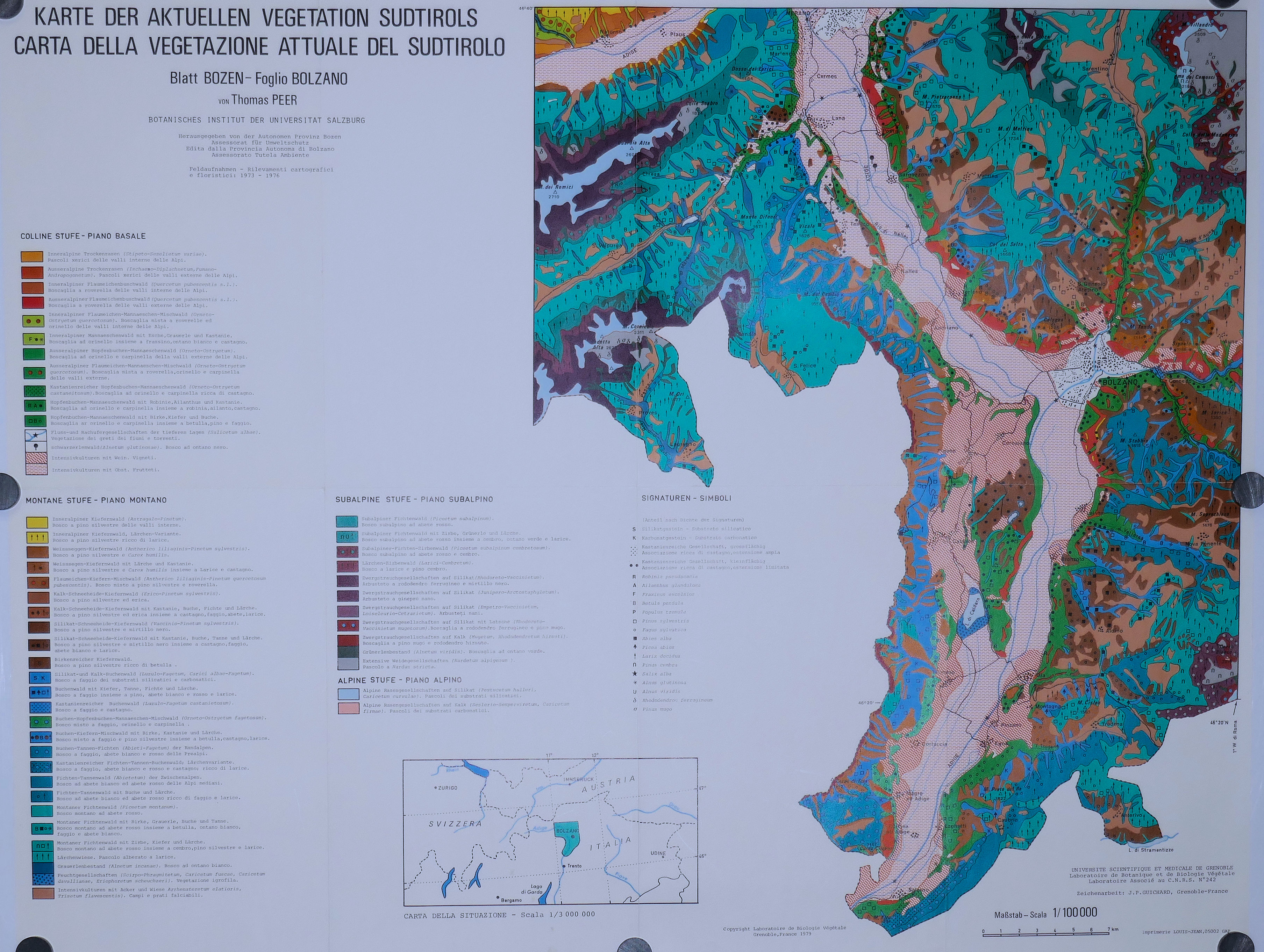 Carte de la,Végétation actuelle du Sud Tyrol. 100.000° 1976