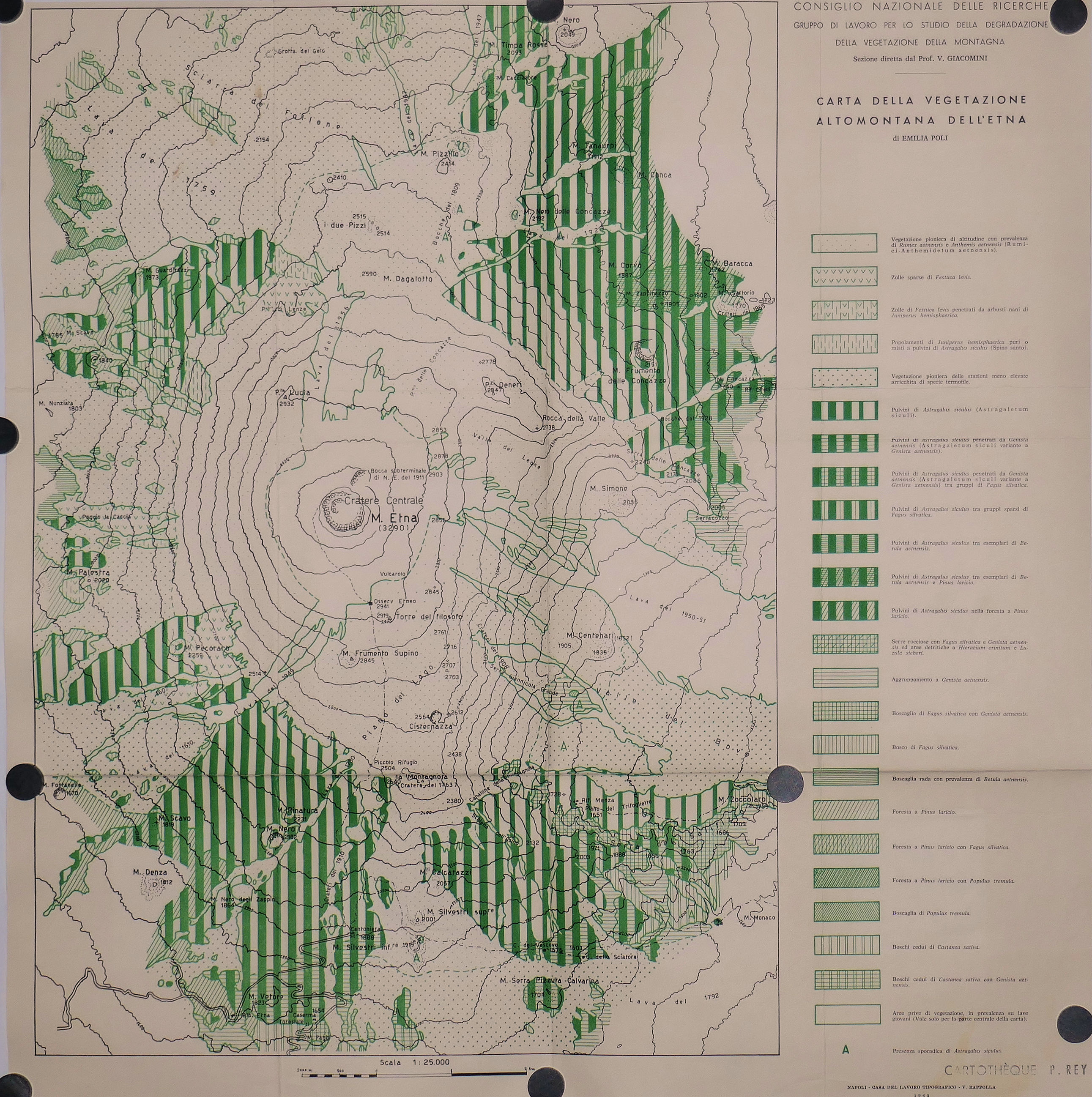 Carte de la Végétation altimontaine de l’ETNA 25.000° 1968