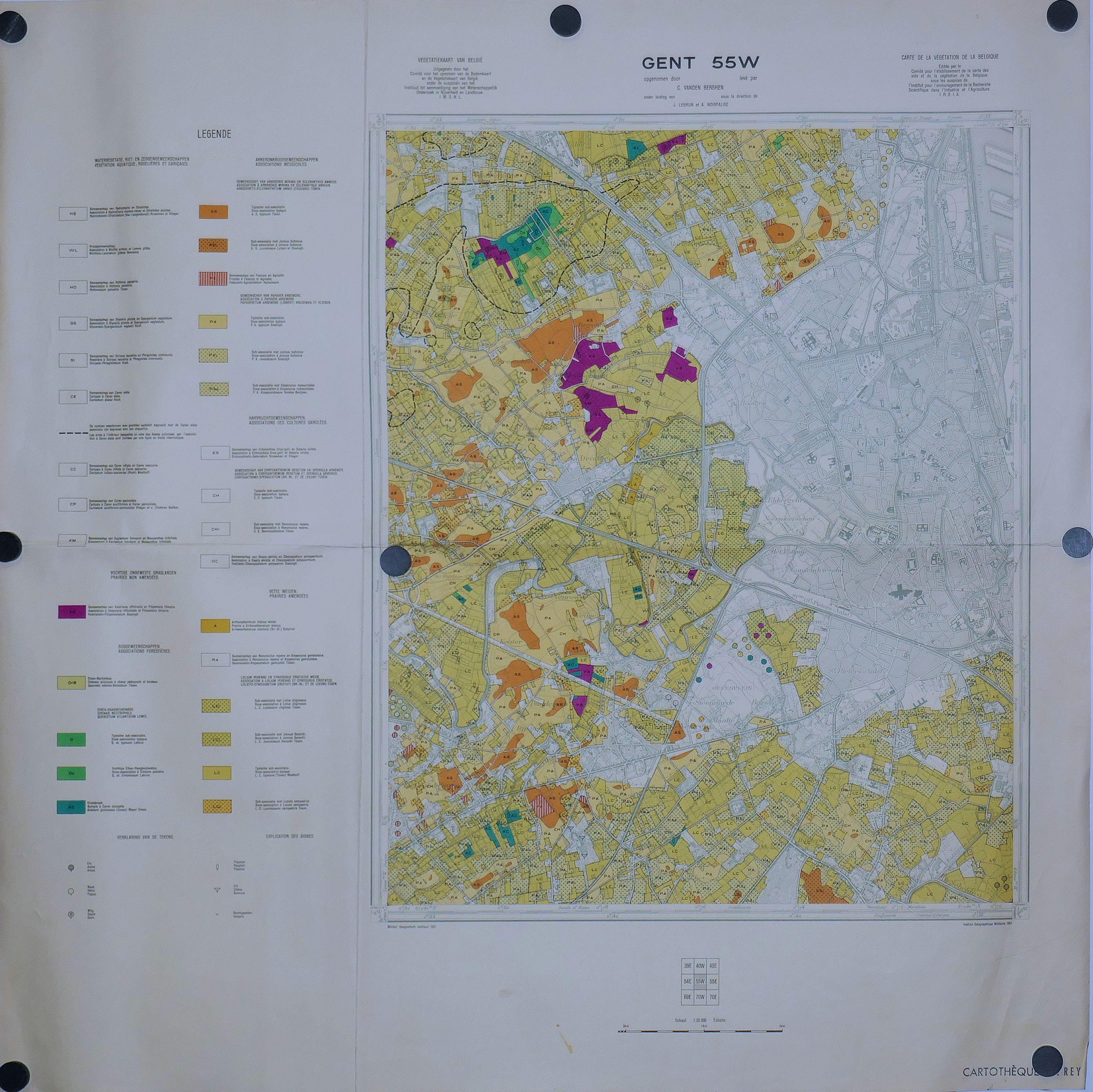 Cartes de la région d’UTRECHT (3 Feuilles: 1, 2, 3 ) Végétation, Ecologie, Sols 50.000° 1973 Carte de la Végétation de VASSFARET, (6 feuilles: 1, 2 3, 4, 5, 6 ) 10.000° 1974 Carte de la Végétation des dunes de OOSTVOORNE 2.500° Carte de la Végétation de NEERACHER RIETS 2.500° 1964
