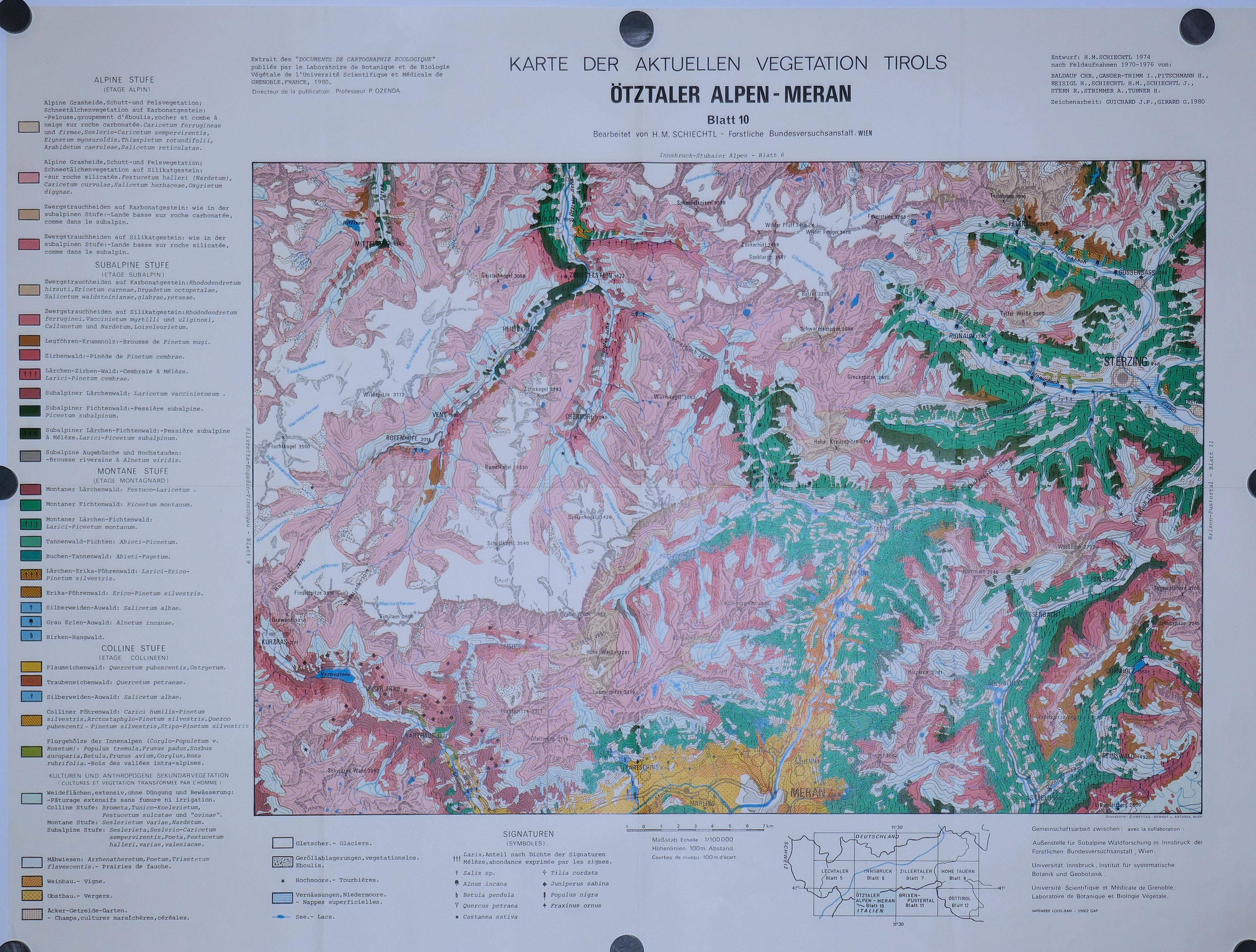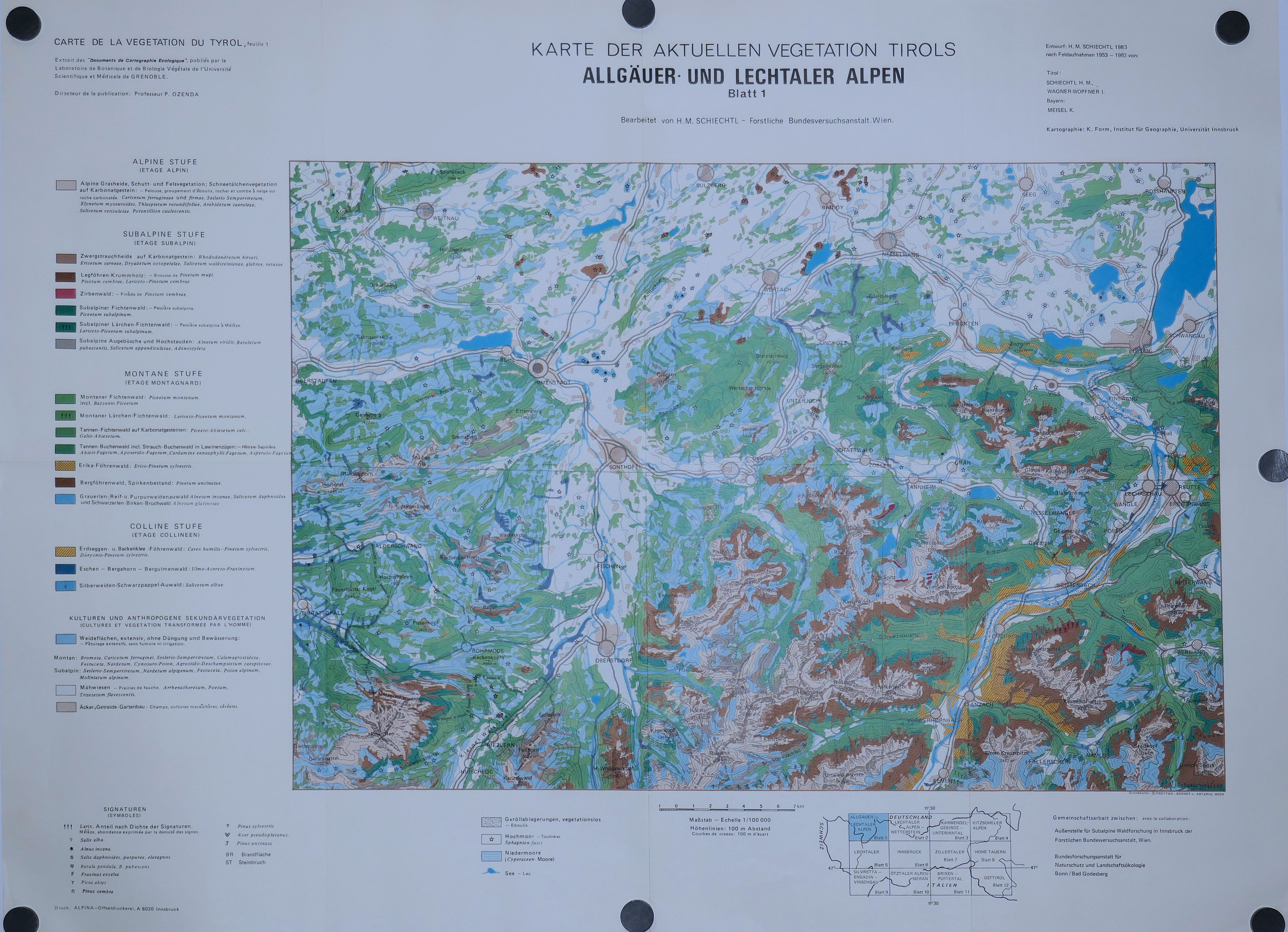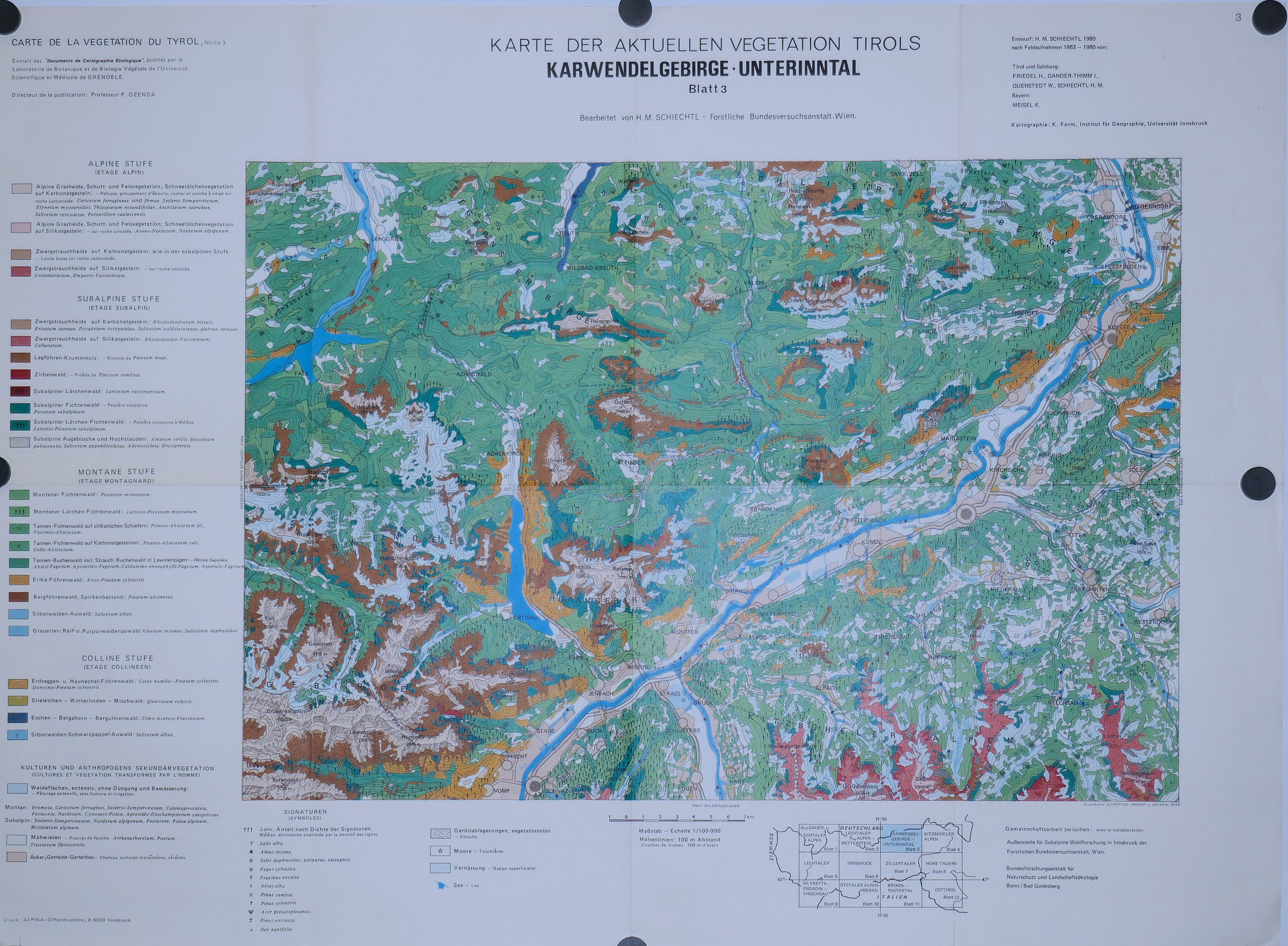 Carte de la Végétation naturelle du Tyrol ( 6 feuilles: 1, 2, 3, 4, 5, 6 ) au 100.000° 1969 – 1983