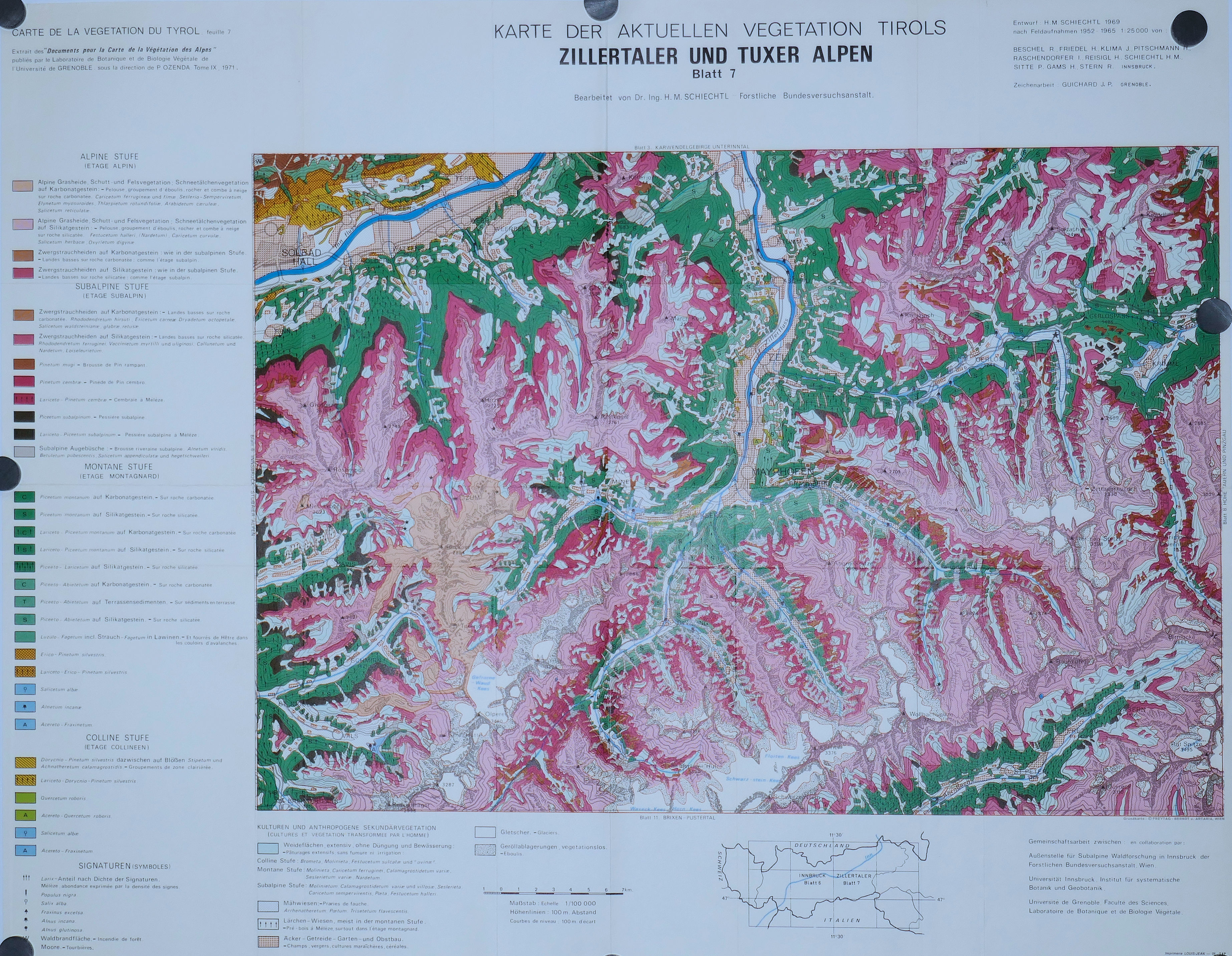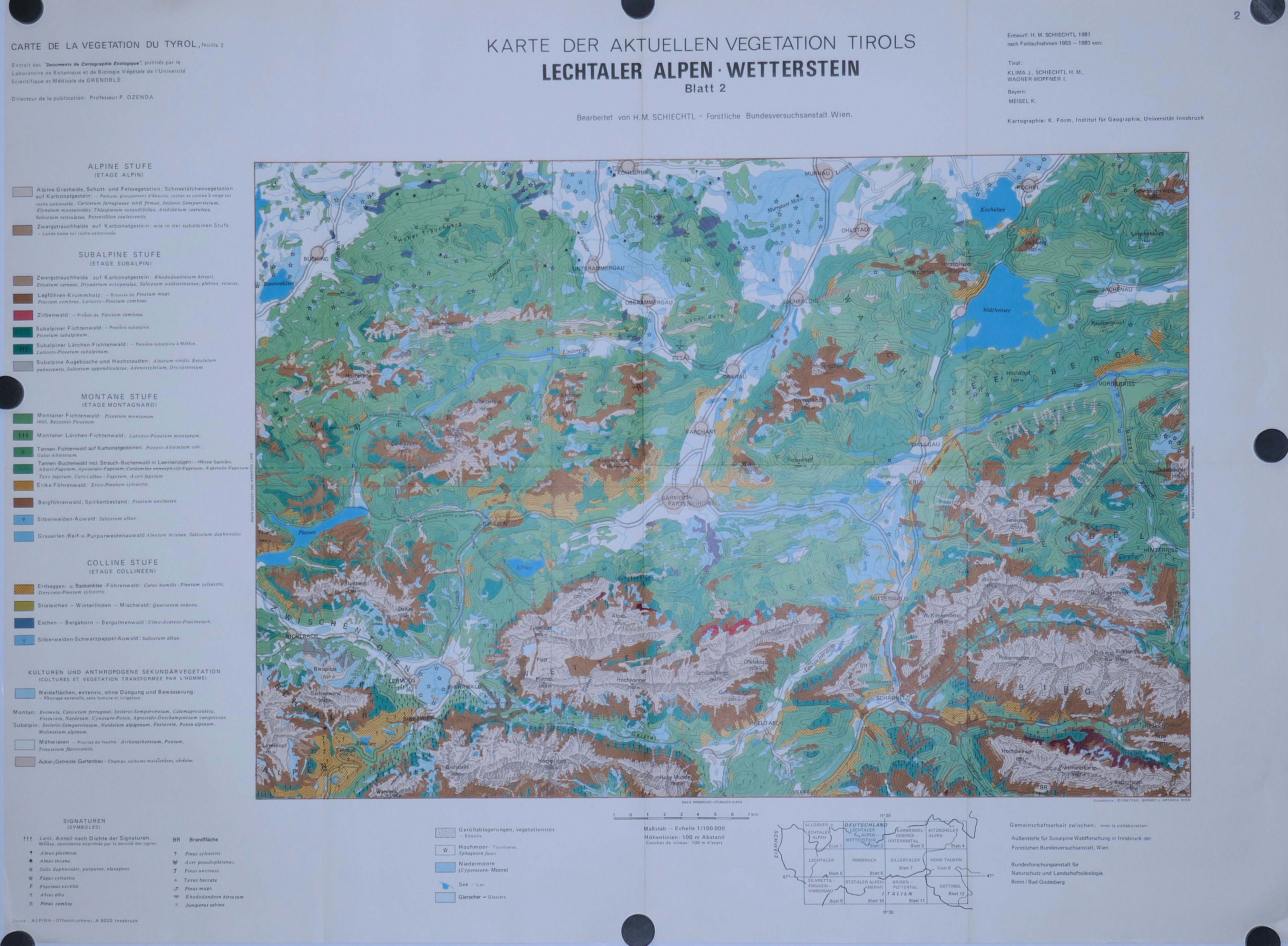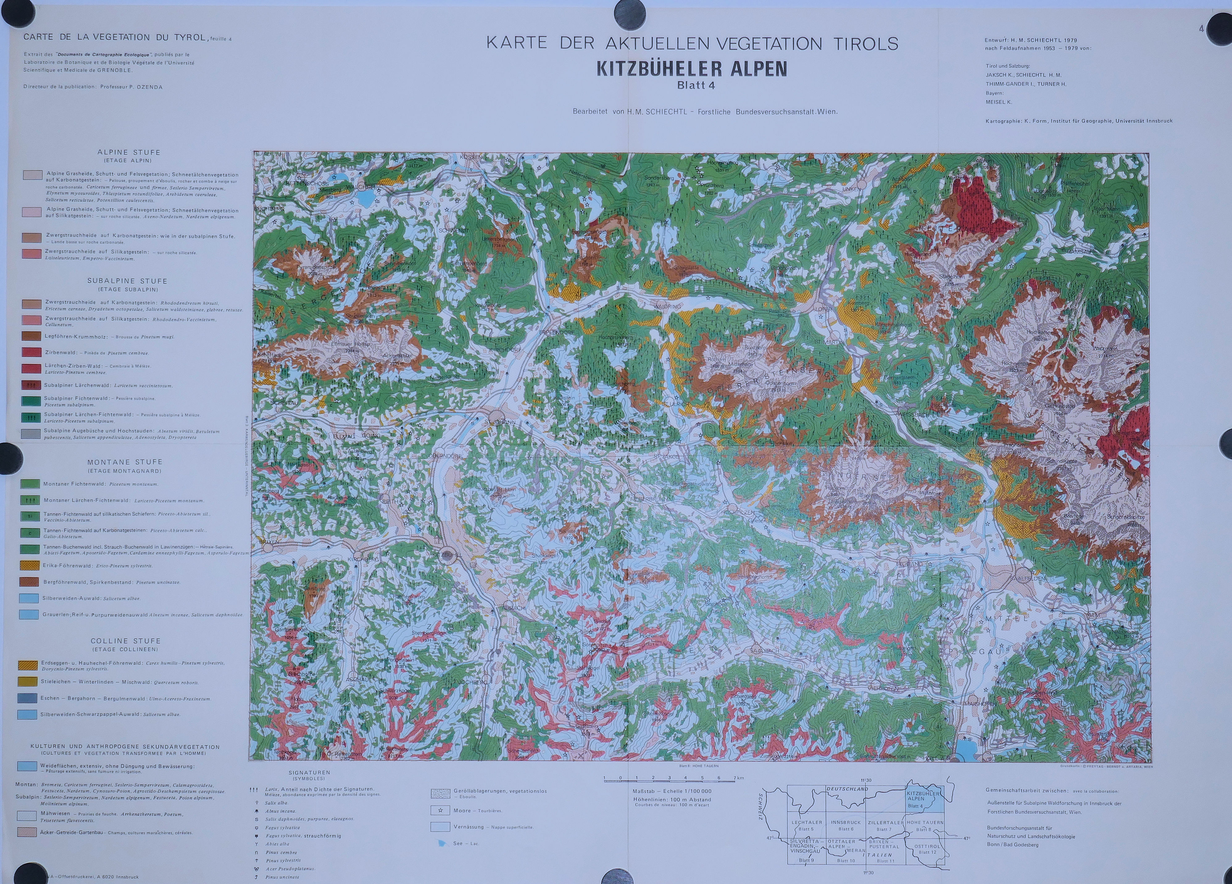Carte de la Végétation naturelle du Tyrol ( 6 feuilles: 1, 2, 3, 4, 5, 6 ) au 100.000° 1969 – 1983