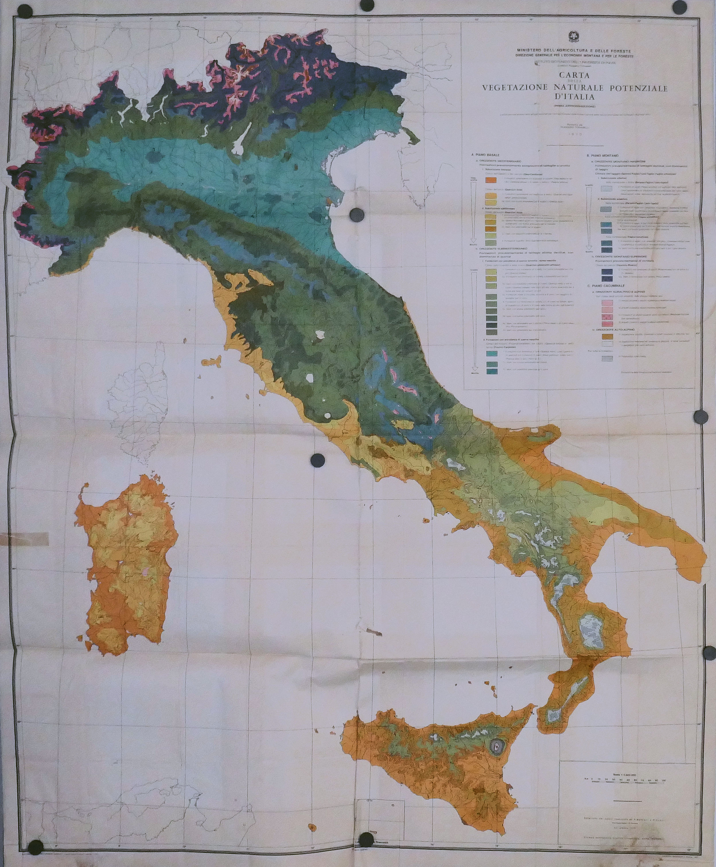 Carte de la Végétation naturelle potentielle d’ITALIE 1.000.000° 1970