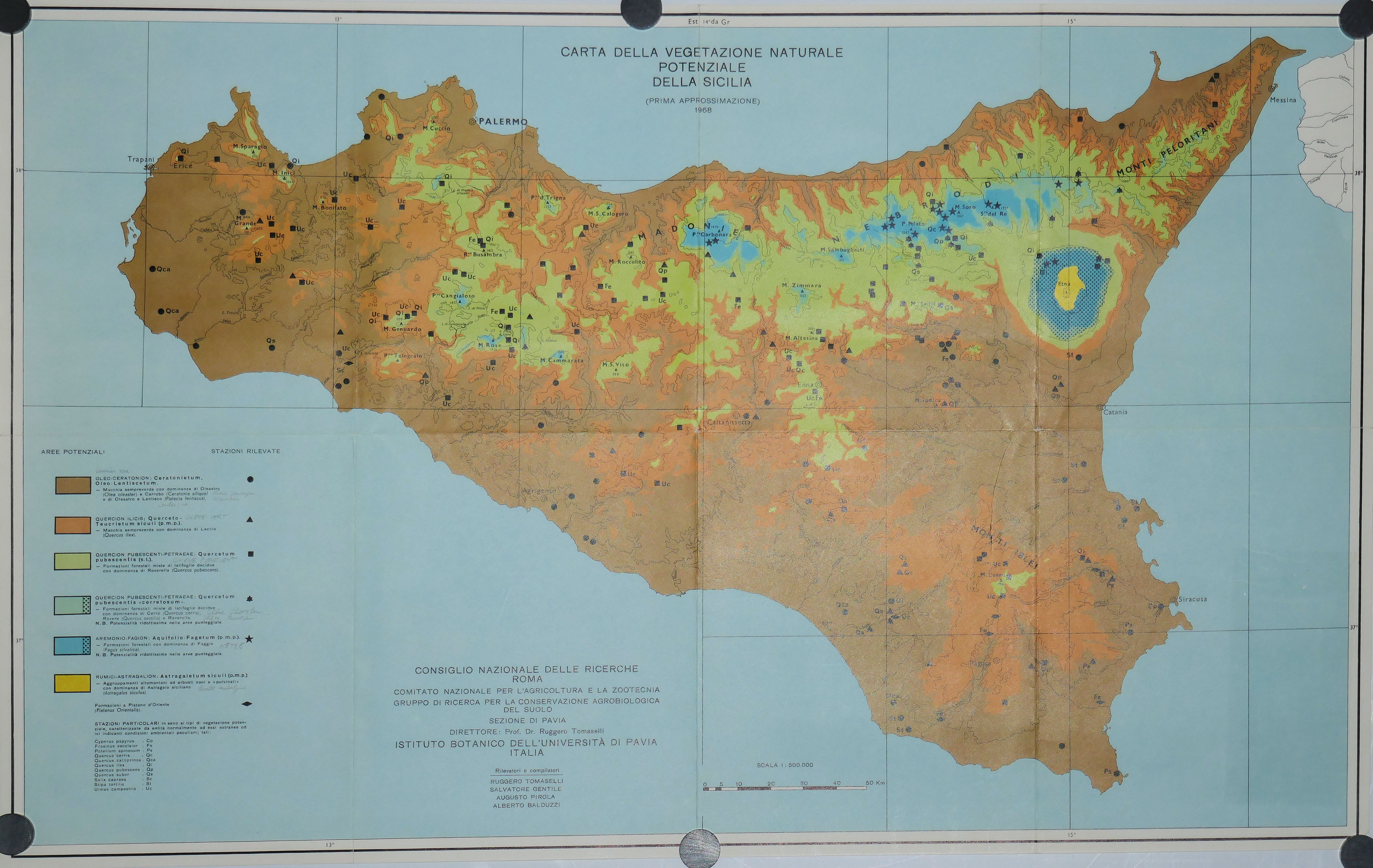 Carte de la Végétation naturelle potentielle de SICILE 500.000° 1968