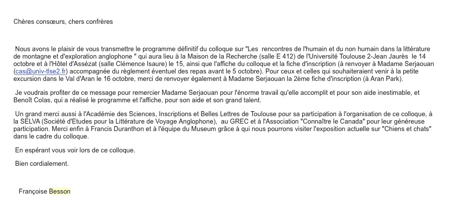 Les rencontres de l’Humain et du non-Humain- 14 Oct 2016