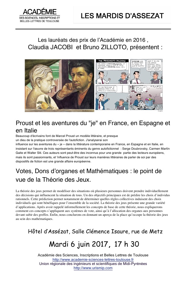 Accueil»Activités » Mardi Assézat 6 Juin 2017 – Proust et les aventures du « je » en France, en Espagne et en Italie. (Claudia JACOBI et Bruno ZILLOTO)