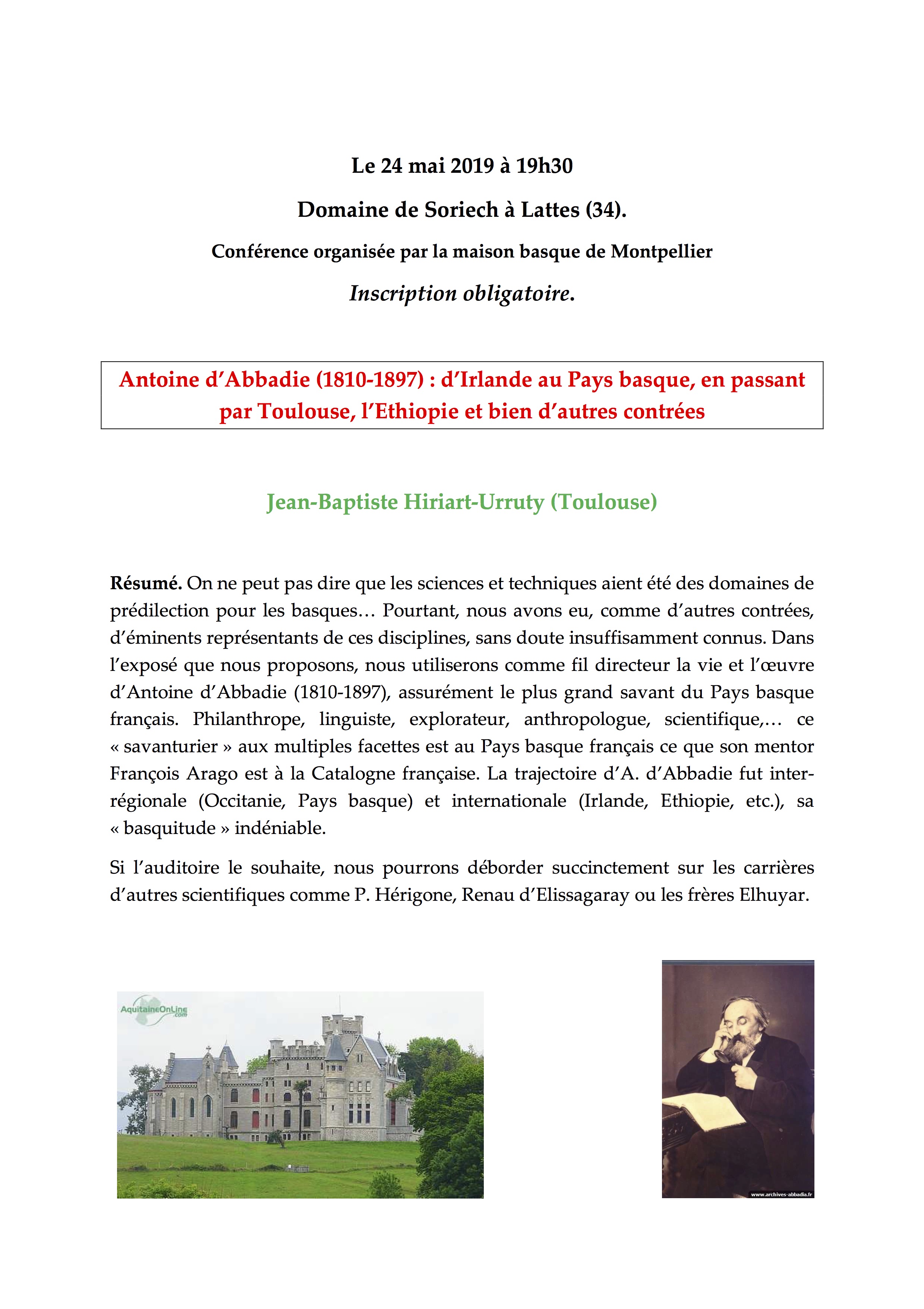 On nous communique : Antoine d’Abbadie (1810-1897) « D’Irlande au Pays Basque en passant par Toulouse… (J-B. Hiriart-Urruty)