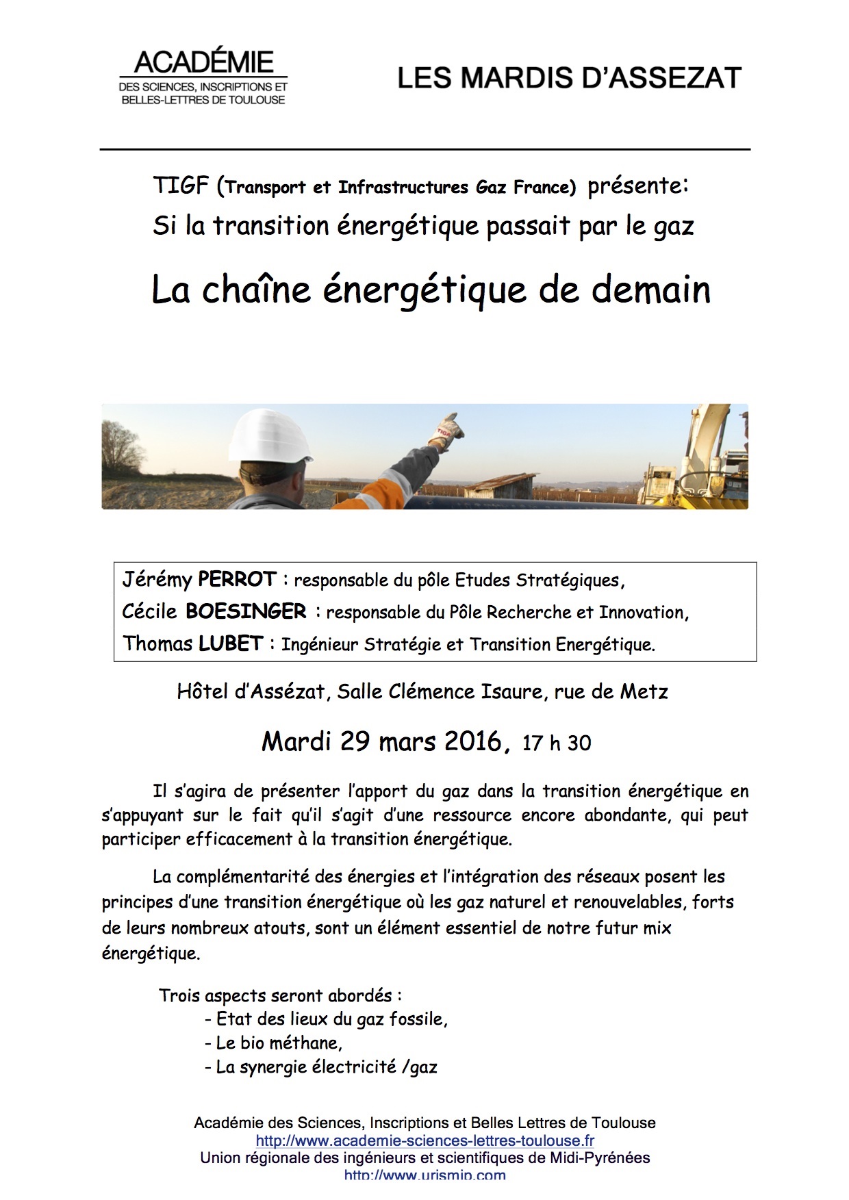 Prochain Mardi Assezat – 29 mars : La chaine énergétique du futur (Perrot, Boesinger, Lubet)