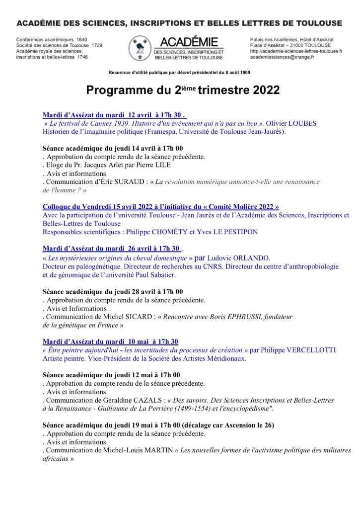 Les activités en bleu sont seules ouvertes à tout public (dans la limite des places disponibles).